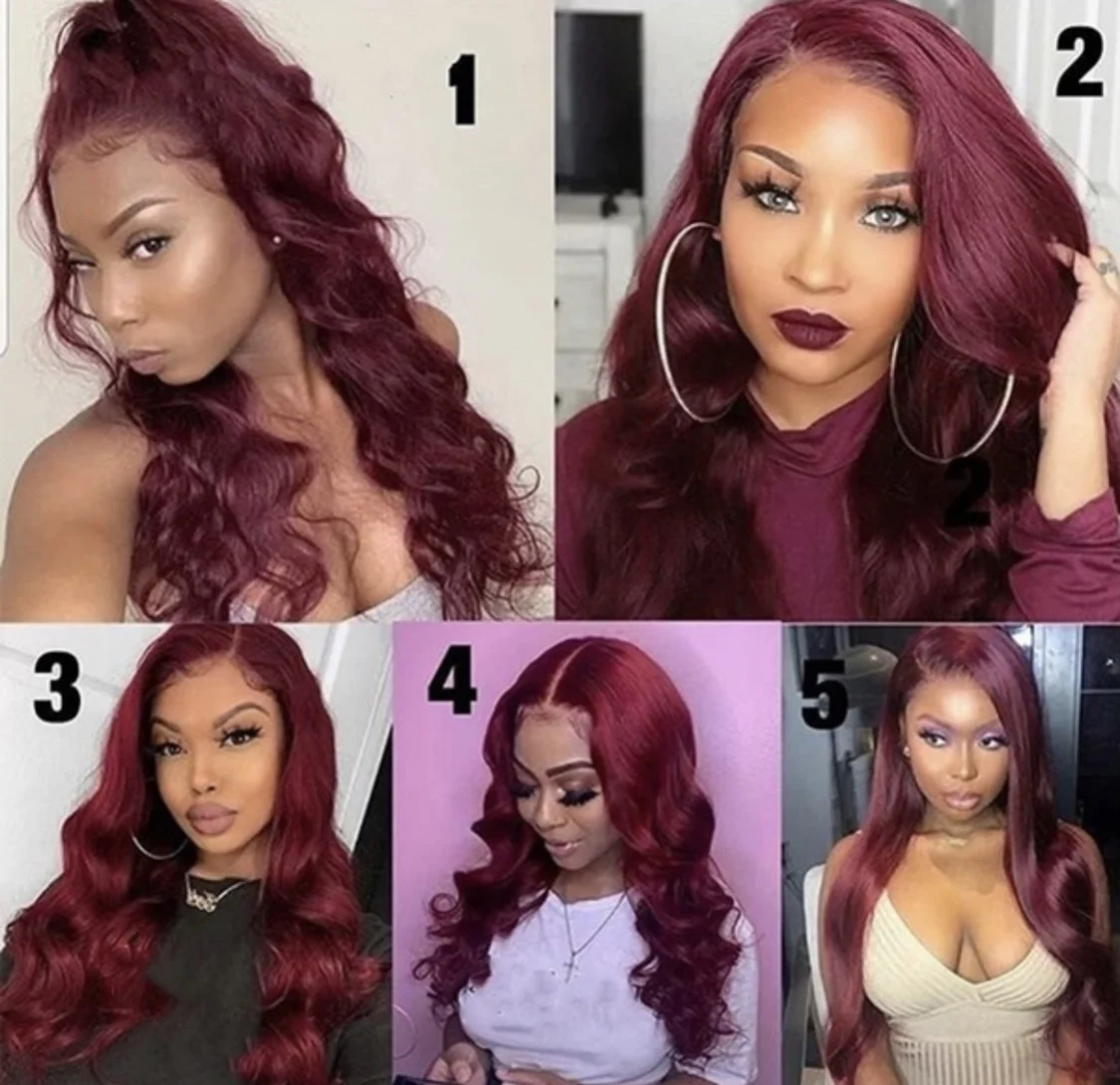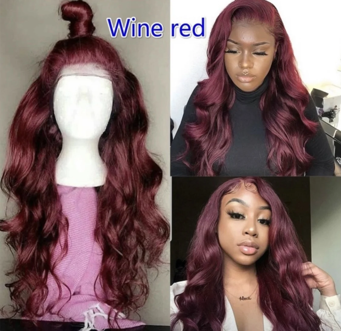 Винно-красный длинный парик фронта шнурка глубокая часть синтетичес...