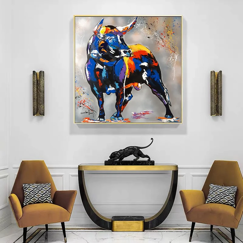 Картина на холсте с испанским быком и граффити, Настенная картина для гостиной, спальни, современное интерьерное украшение, индивидуальная декоративная живопись (без рамки)