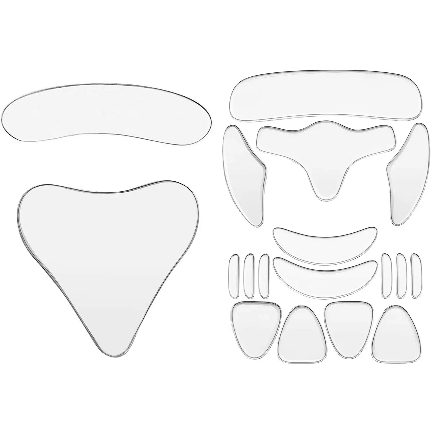Набор из 18 увлажняющих силиконовых подушек: набор включает в себя набор наклеек для лица (всего 16 штук), 1 силиконовый нагрудный пластырь и 1 коврик для шеи, многоразовый и легкий, получите более гладкое, очаровательное лицо, более молодой вид декольте, грудь и шея с помощью этих клейких силиконовых подушек