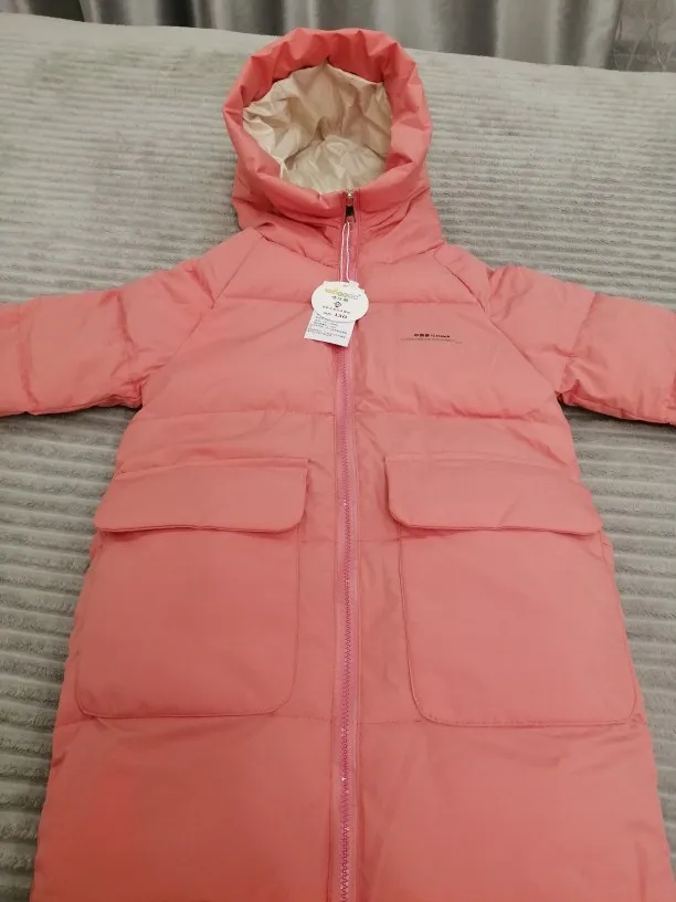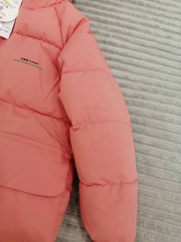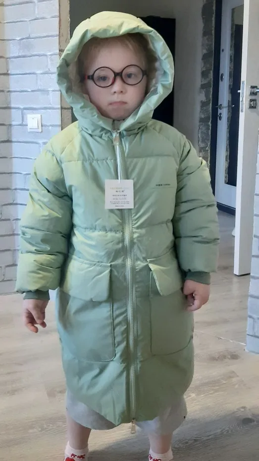 Куртка, как я её ждала, из всех своих посылок, и вот она пришла. Я ошиблась, заказала 4т размер, это 120 на рост ребёнка, а мы 98, она нам большая. Пойдёт на вырост. Она не зимняя, минус 30 никак не подходит, а вот для осени и весны в самый раз. Вообщем претензий у меня нет, куртка симпотичная. Единственное что мне не понравилось, надпись на китайском языке, буду там делать апликацию.