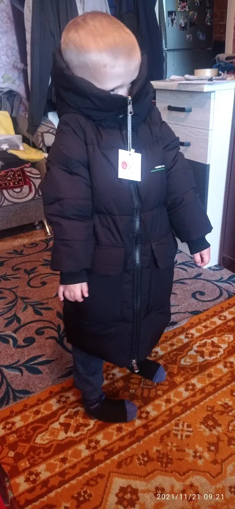 26.11- 21.01 Куртка норм, длинная,закрывает колени, на рост 116 великовата. Брала с запасом на следующий сезон .