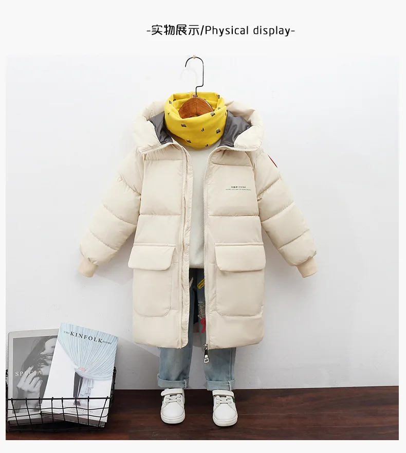 Одежда для девочек, зимняя одежда, пальто, пальто, модное новое пальто beibei для мальчиков 2-10 лет, Толстая теплая длинная пуховая куртка с капюшоном