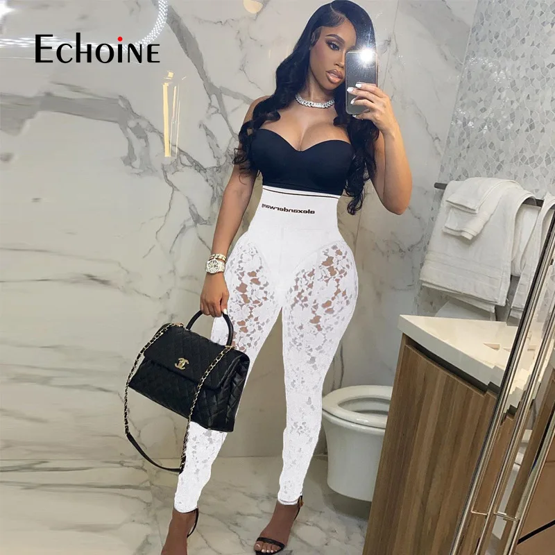 Осенние новые прозрачные кружевные облегающие обтягивающие брюки-карандаш с приемной талией, женские повседневные праздничные Клубные брюки