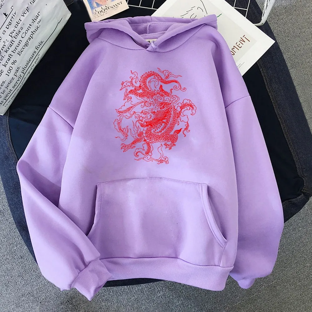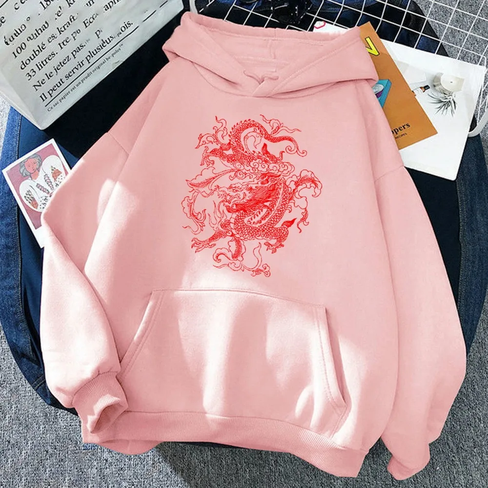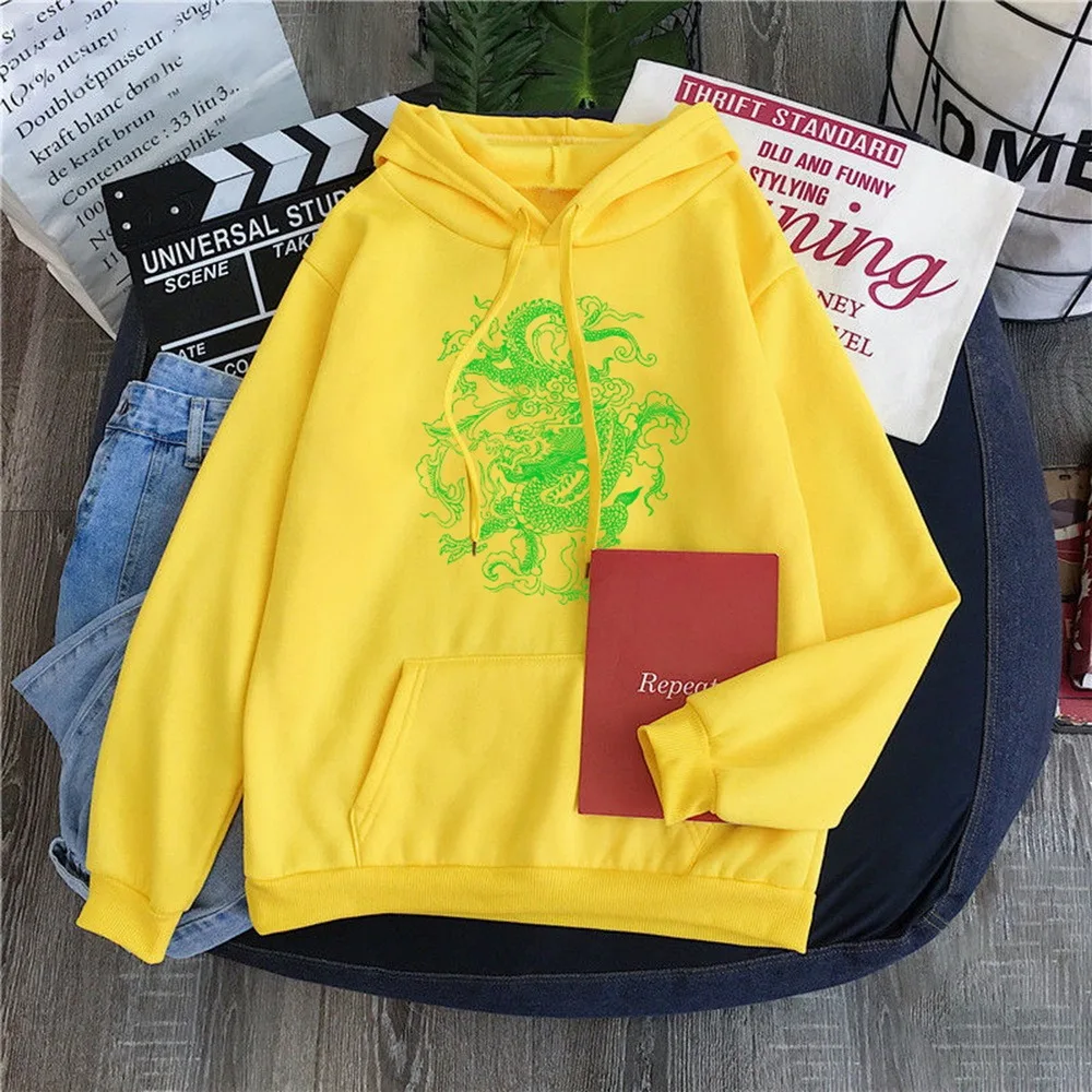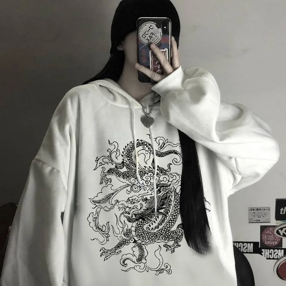 Женская толстовка с капюшоном и принтом дракона, в стиле Харадзюку