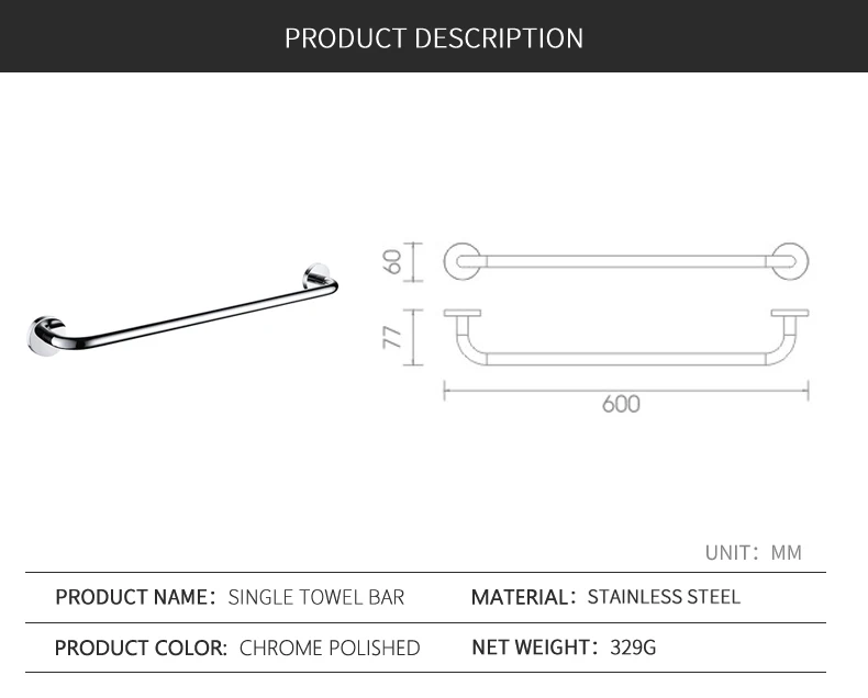 Настенный держатель для полотенец, из нержавеющей стали, 60 см