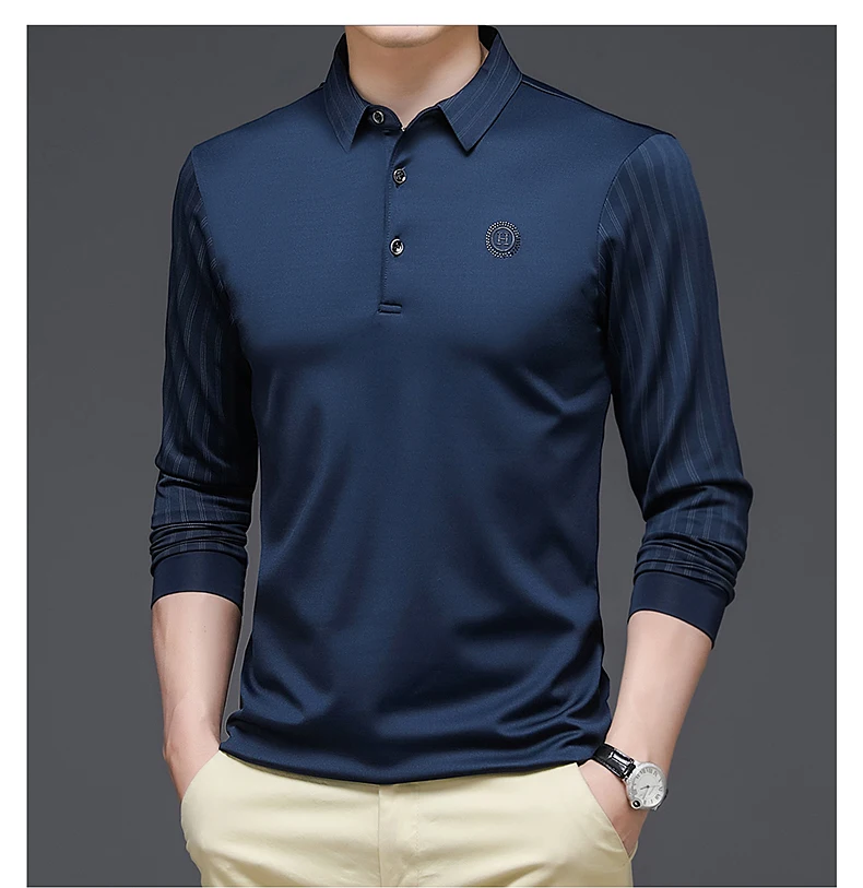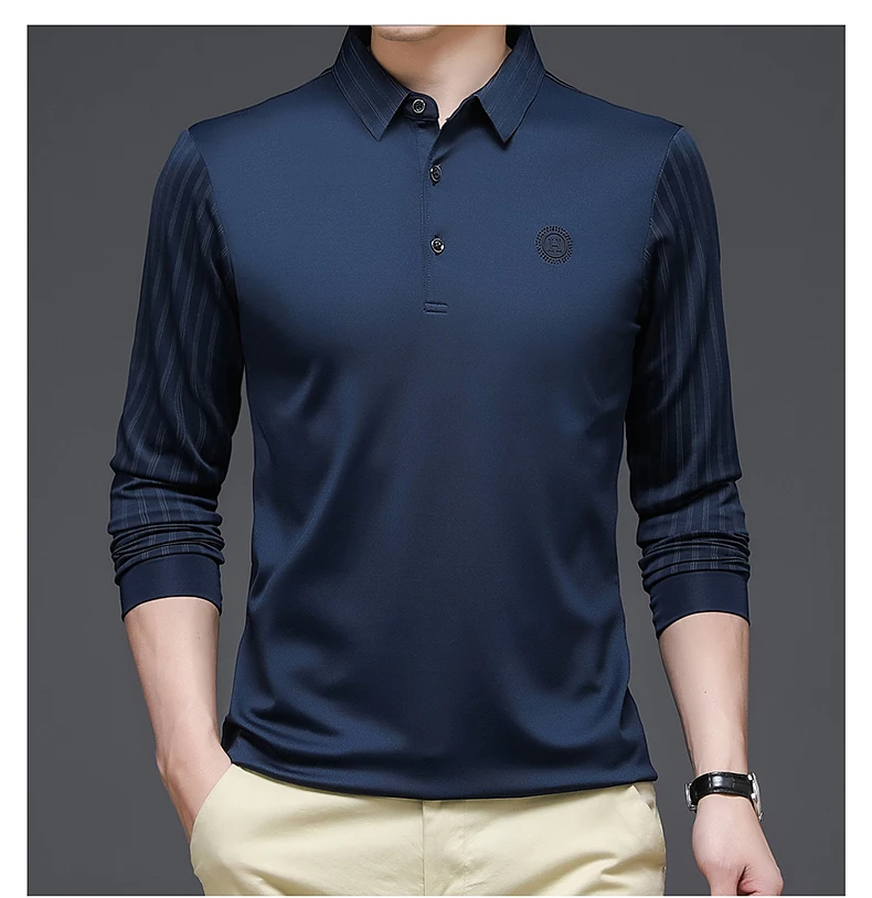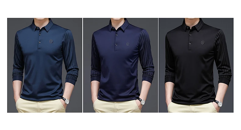 Мужская приталенная рубашка-поло, Повседневная футболка в полоску, с длинным рукавом, в стиле пэчворк, в Корейском стиле, T1071, весна-осень 2022