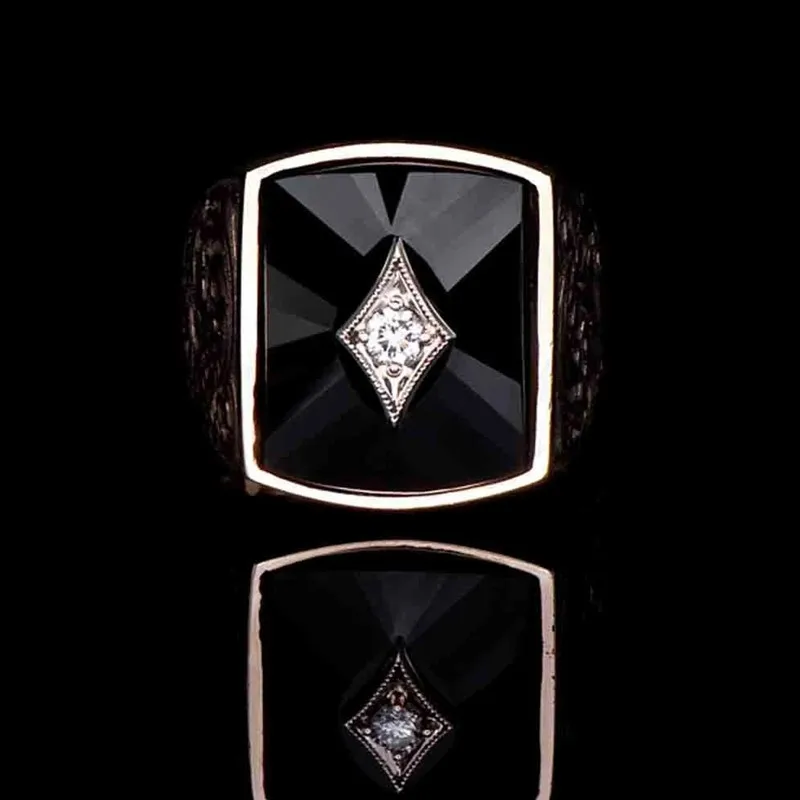 Кольцо мужское Винтажное с фианитом, классическое Ювелирное Украшен...