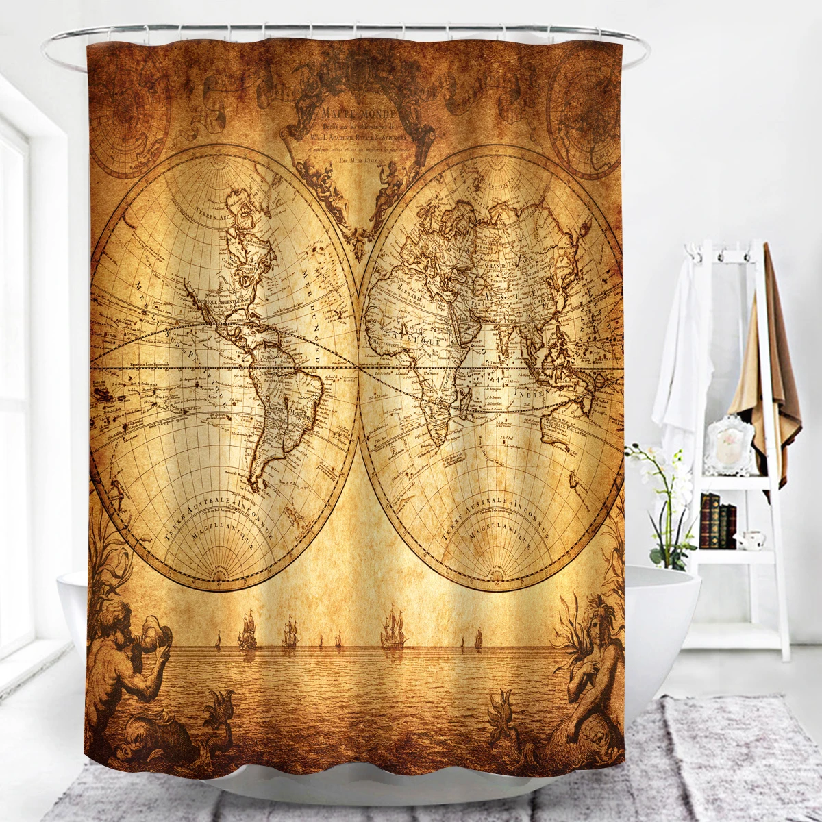 Shower Fabric WashableBath Curtain,Vintage Shower Curtain