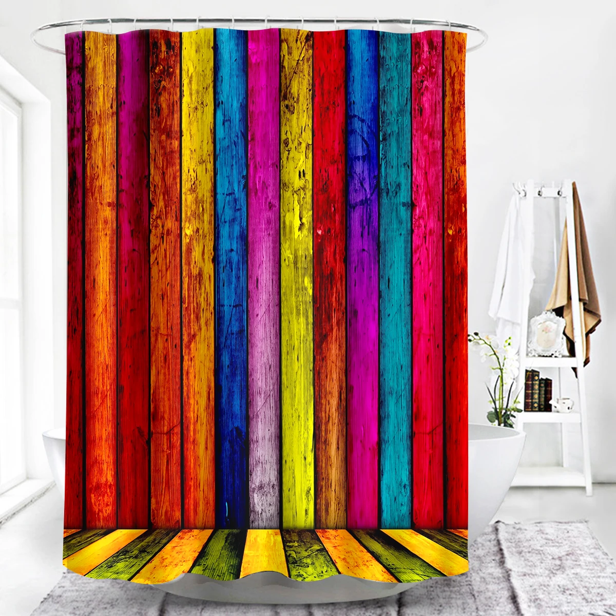 -Изготовлен из 100% высококачественного полиэстера. Водонепроницаемый и устойчивый к плесени. Уникальный дизайн и цифровая печать ярких цветов, которые могут украсить вашу ванную комнату.