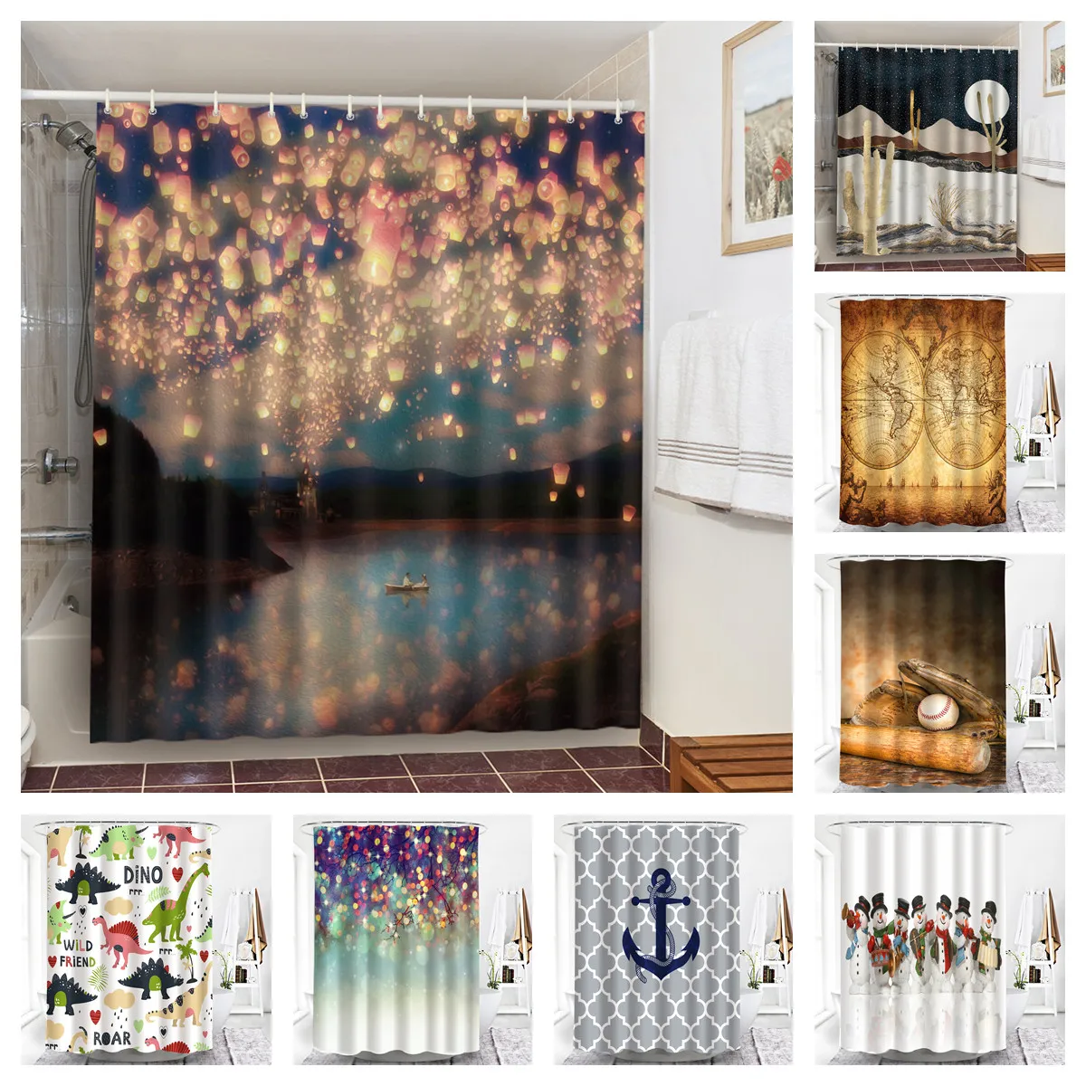 Различные занавески для душа могут приносить различное настроение. Добавьте занавеску для душа в вашу ванную комнату для немного удовольствия. Вы можете начать прекрасный день и закончить день с ним. Наши шторы водонепроницаемые и моющиеся с высококачественной печатью. Занавески для душа изготовлены из прочного полиэфирного материала премиум-качества. Есть различные стили для вас на выбор.