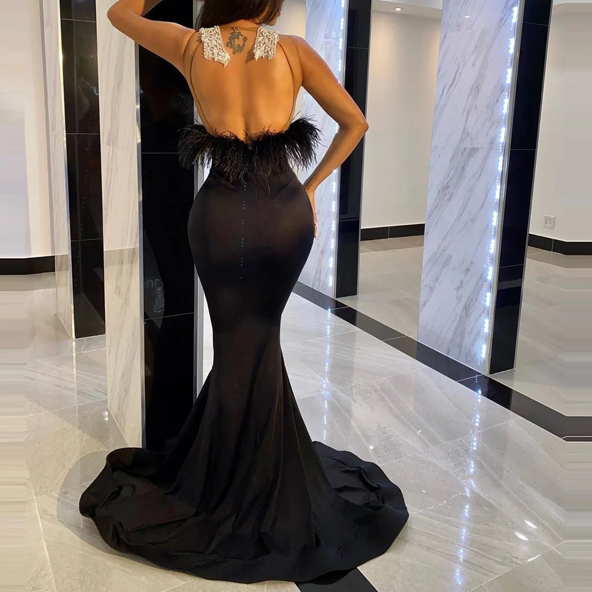 Сексуальное прозрачное длинное платье-Русалка с открытой спиной для выпускного вечера