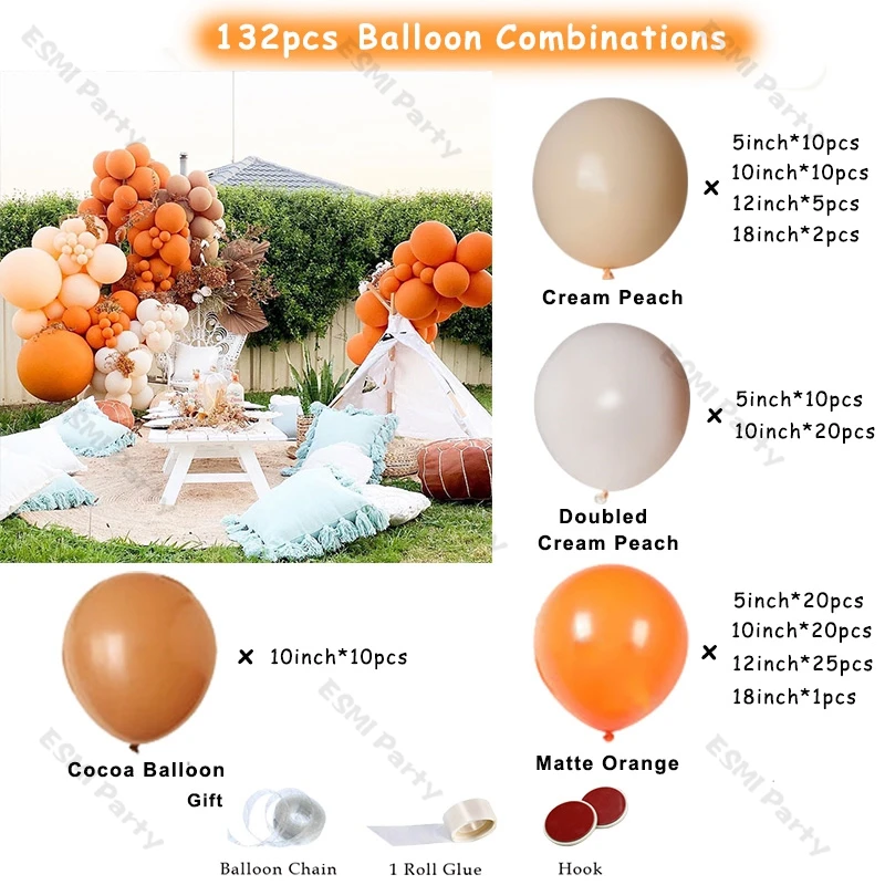 132 шт матовые оранжевые воздушные шарики гирлянда цепь сад пасхальное праздничное украшение двойной крем персик какао баллон Арка Хэллоуин Декор