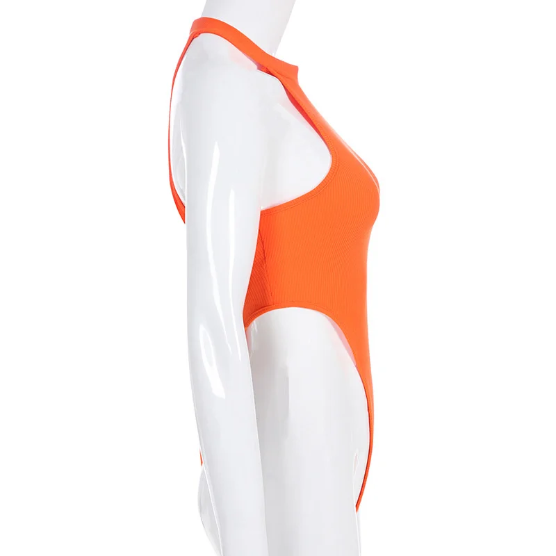 Желтыйзеленыйоранжевыйрозовый комбинезон, флуоресцентный тонкий сексуальный комбинезон, женское черное боди без рукавов с высокой талией, базовое облегающее боди