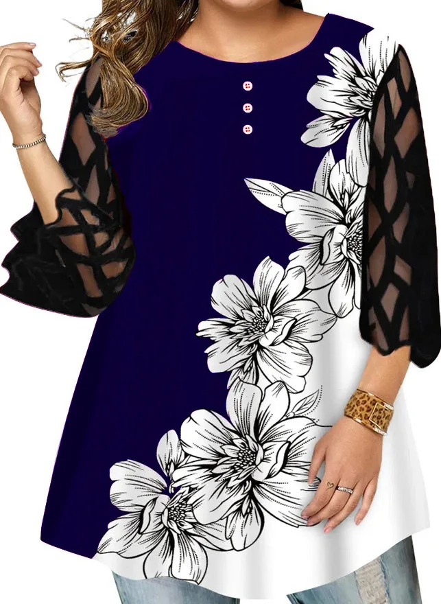 Женская футболка с абстрактным цветочным принтом, большие размеры
