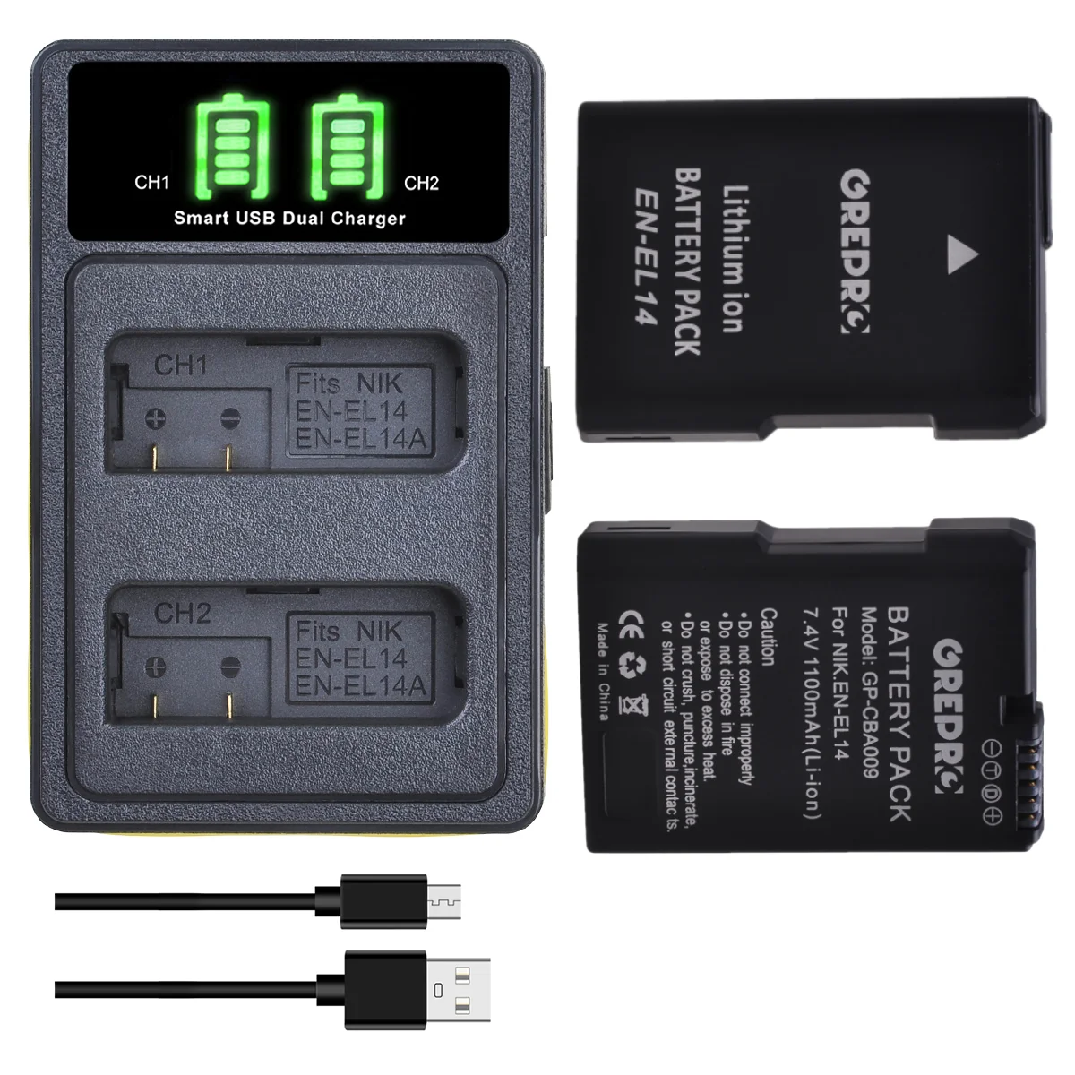 Зарядное устройство EN-EL14 с аккумулятором EN-EL14A EN EL14 для камер Nikon D3500 D5500 P7800 P8000 D5600 D5300 D3300 D5200 D3200 D5100