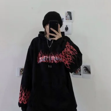 Пламени уличный сверхразмерный толстовки женские хип-хоп Женская то...