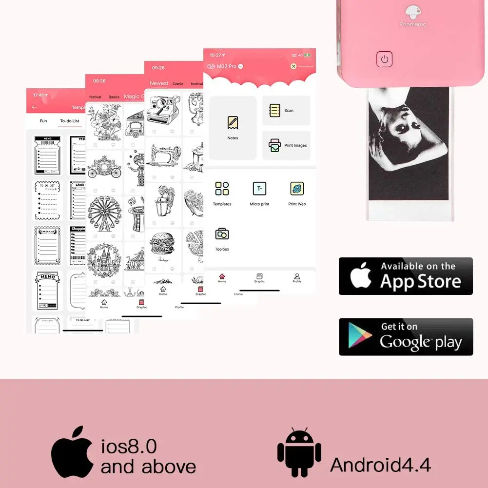 Особенности:1. Бескраскового Термальность метод нанесения принта: 53/25/15 мм БумагаPhomemo M02Pro-это прямой термопринтер, который не требует чернил, тонер или лент. Более низкая стоимость по сравнению с струйными принтерами, и более простая в использовании установка-1 клик.2. 300 точек/дюйм четкое изображение-Карманный мобильный принтер печать черно-белых символов, 300 точек/дюйм HD Печать приносит вам более четкие изображения. Адаптер 5V-2A делает изображение более четким.3. Bluetooth-совместимое соединение для iphone и Android:Термопринтер легко подключается к мобильный телефон или iPad через Bluetooth-совместимый 4,0. Система для IOS 8 и Android 4,4 или выше. Вы можете использовать ваши смартфоны для печати того, что вы хотите сразу. Печать высококачественных фотографий.4. Мути-функции бесплатное приложение-Приложение Phomemo предлагает различные шрифты, фильтры и темы, Сделайте ваши фотографии стильными. Поддерживает веб-печать, печать шаблонов, печать документов на микроофисах. С некоторым удовольствием графика обновляется каждые 2 недели.Упаковочный лист:1 * M02Pro термопринтер4 * Тепловая бумага1 * USB кабель1 * Руководство пользователя1 * упаковочная коробка