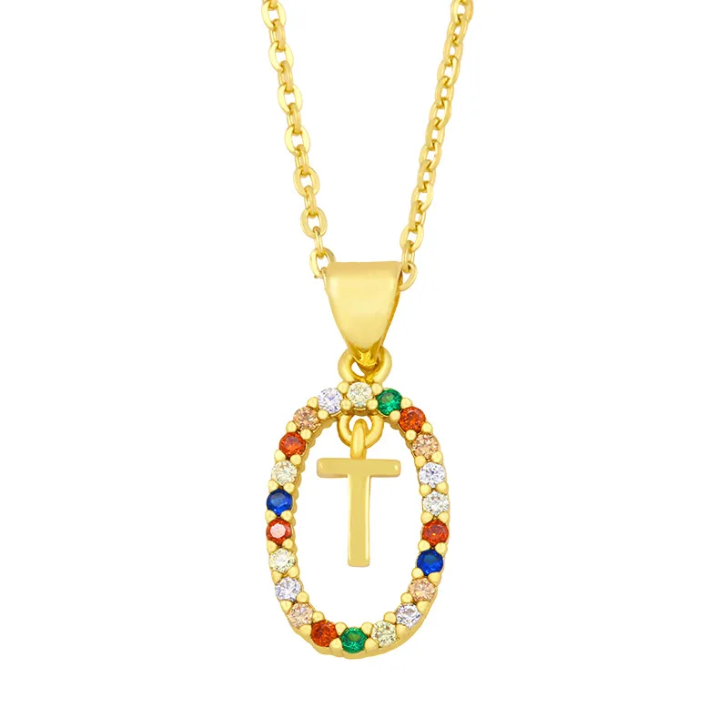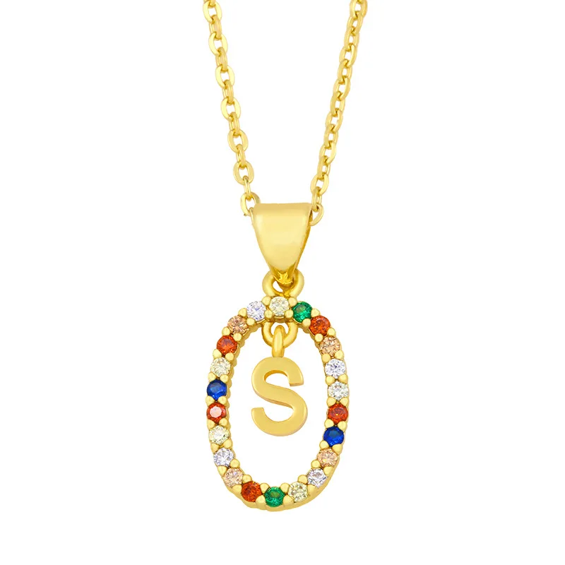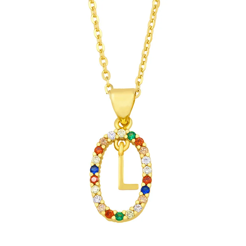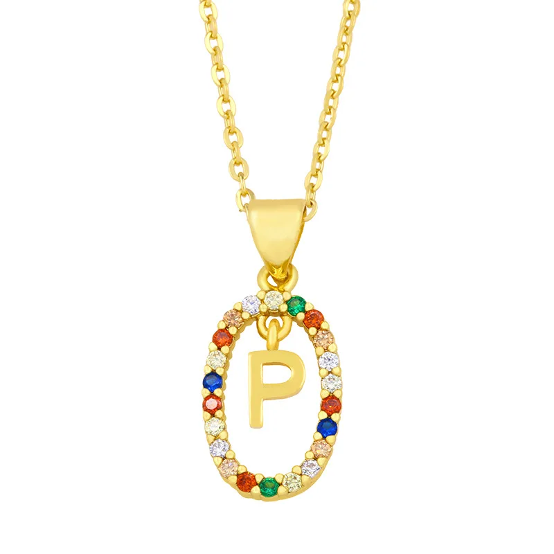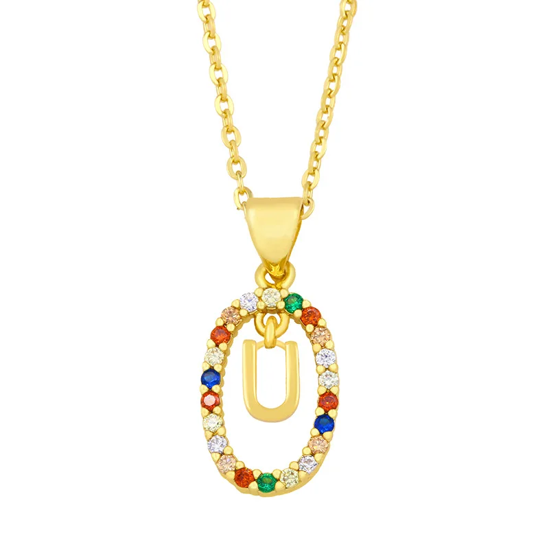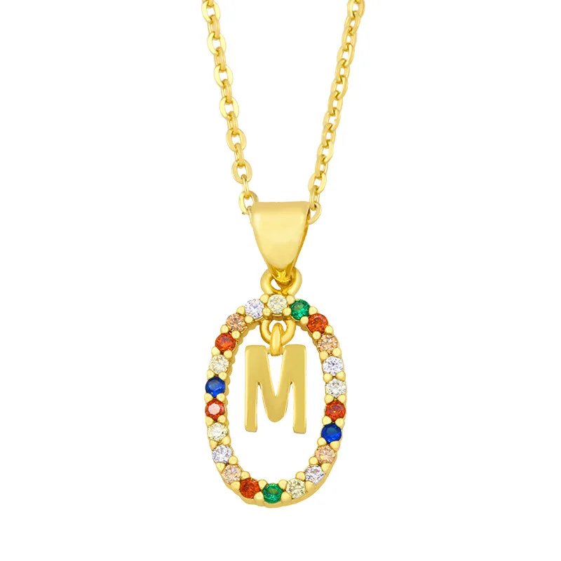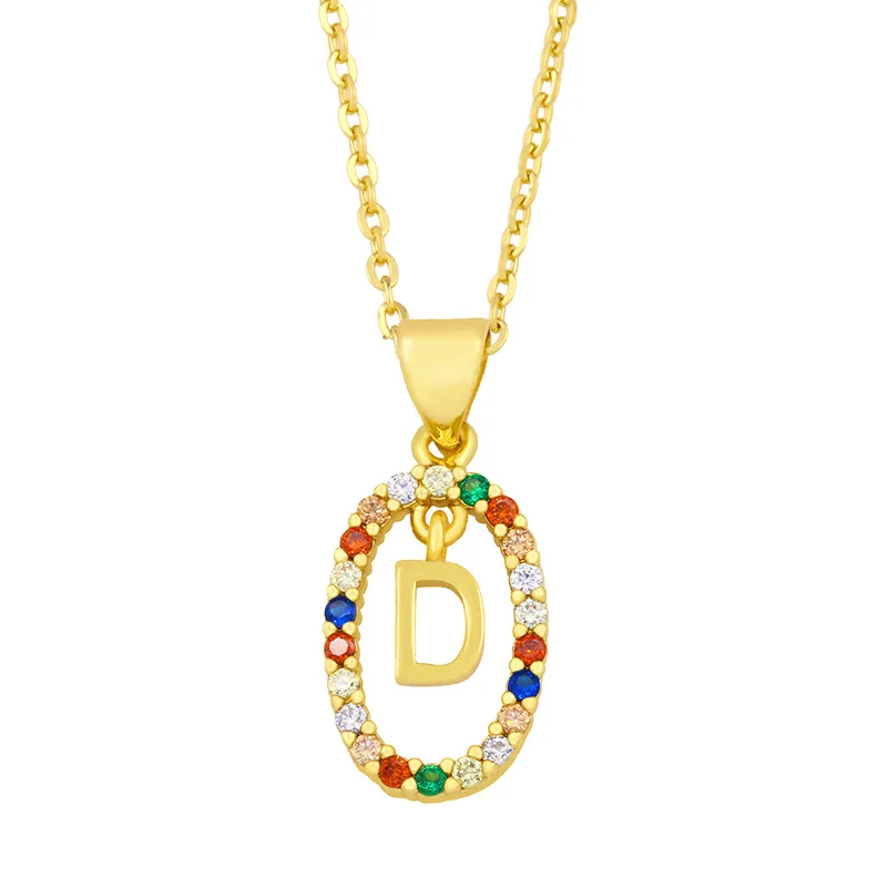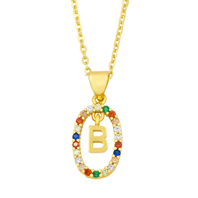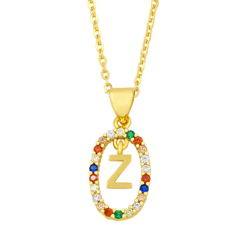 Новый стиль микро-инкрустированный Цветной Циркон индивидуальный хип-хоп 26 Английский алфавит кулон ожерелье для женщин
