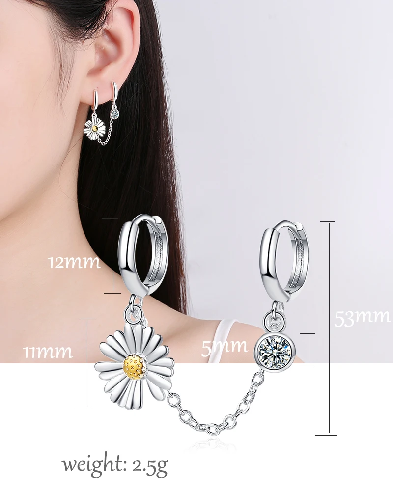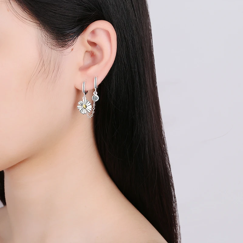 Оригинальные серьги из серебра 925 пробы с маргариткой, с двумя отверстиями для ушей, пирсинг, кольцо, серьги, цепочка для леди, девушек, ювелирные изделия, подарок 2021