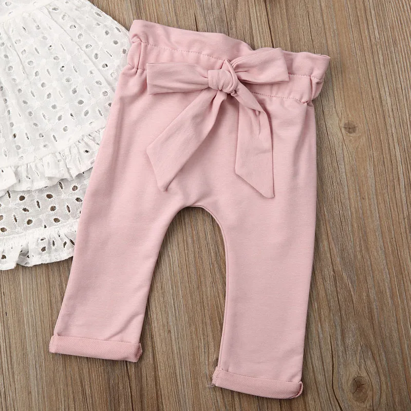 Комплект одежды Lioraitiin для новорожденных, футболка, хлопковые штаны с бантом, повязка на голову, комплект из 3 предметов, 0-24 месяца