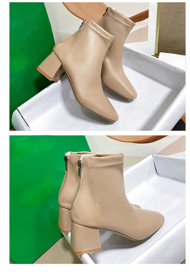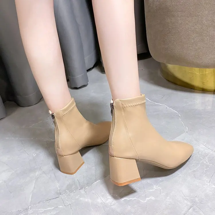 Женские ботильоны на толстом каблуке, элегантные ботинки на молнии с квадратным носком, белого, черного, персикового цветов, Новинка осени 2021