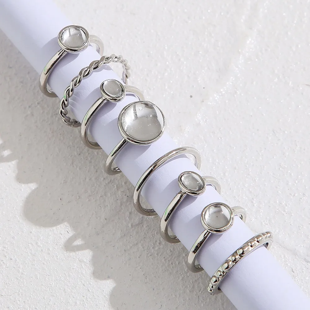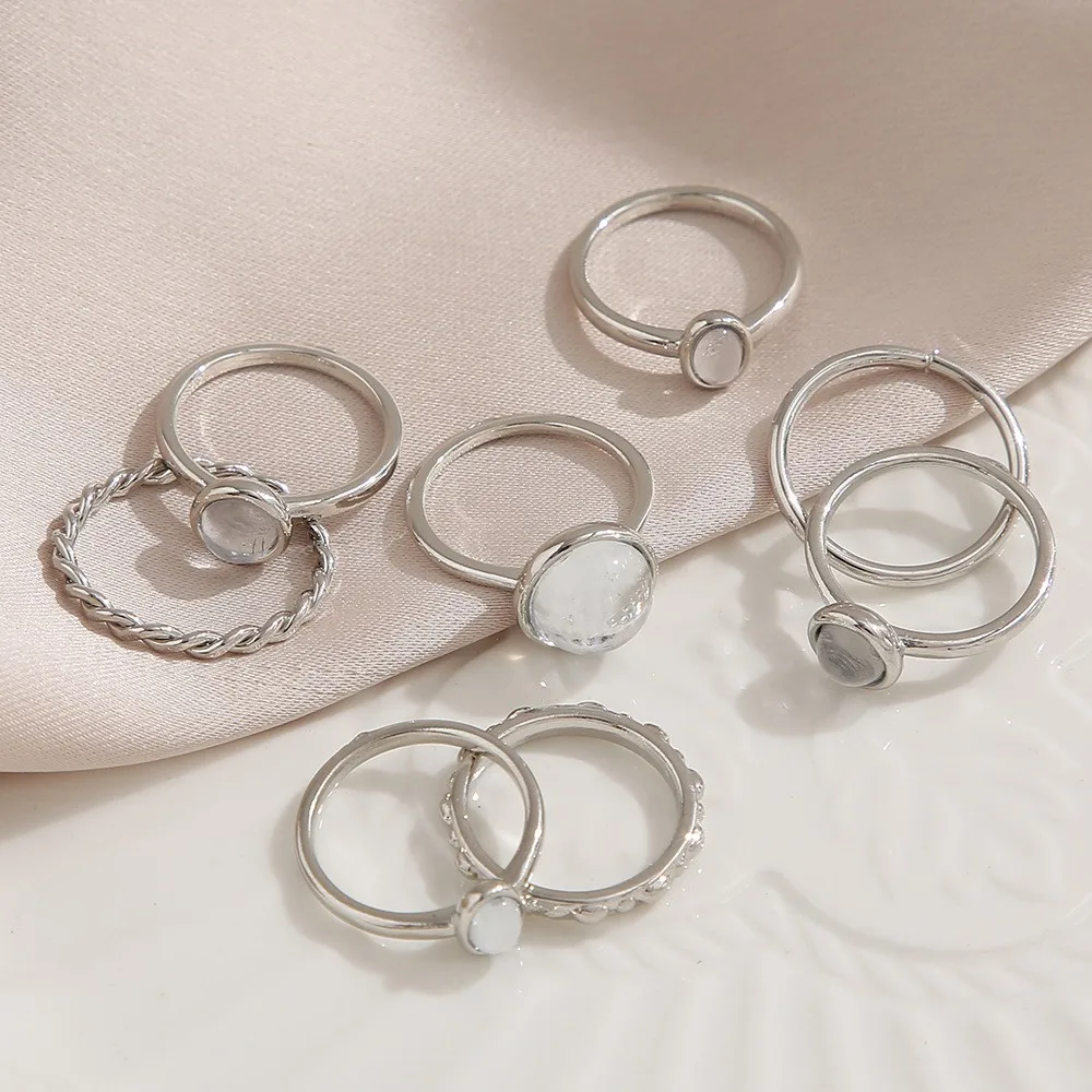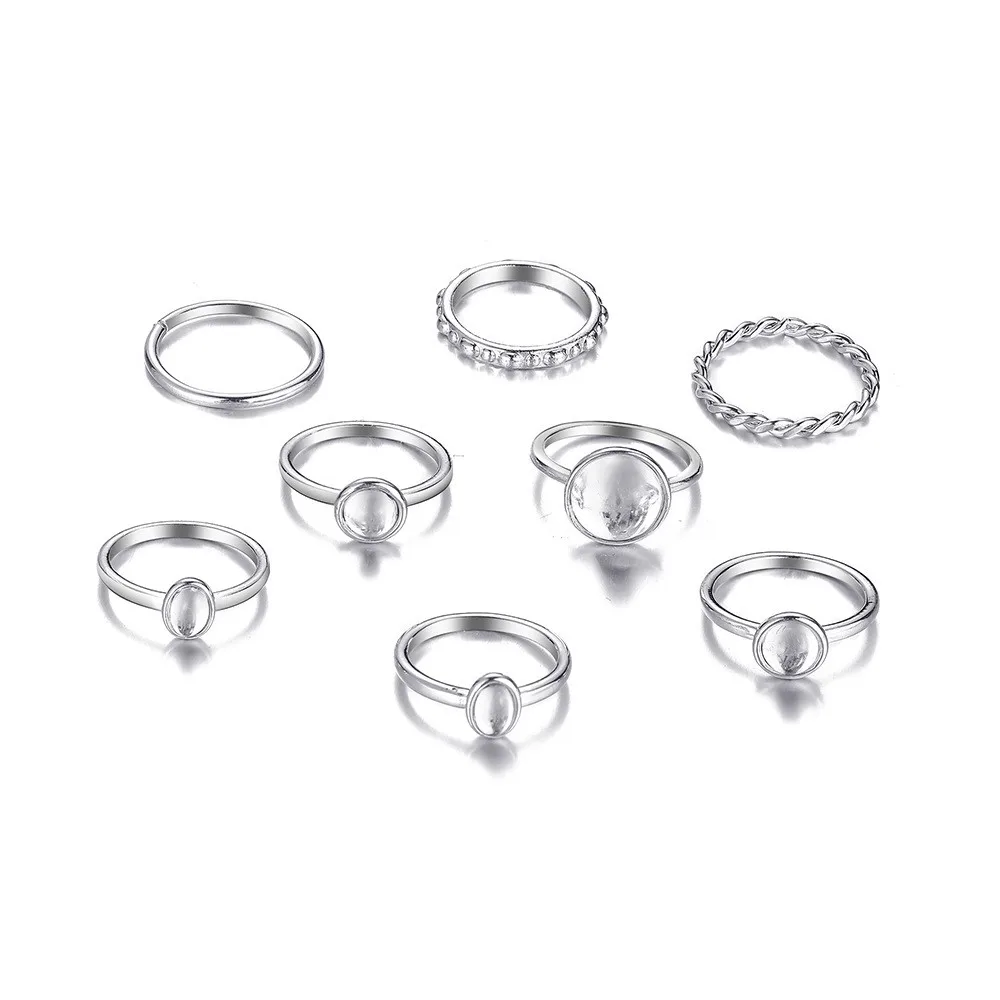 Винтажные кольца с натуральным лунным камнем 8 шт.компл., модные ко...