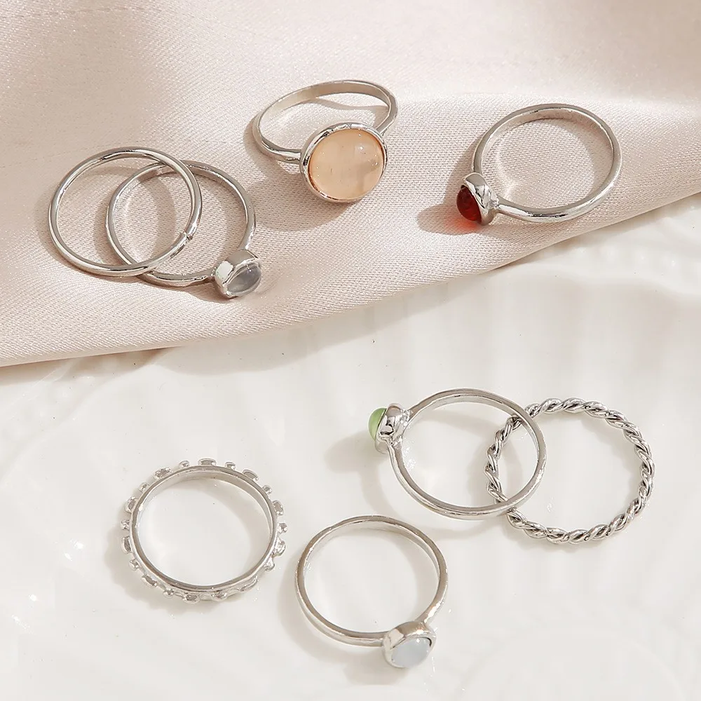 Винтажные наборы старинных колец, разноцветные опаловые кристаллы резной каменный для женщин, мужчин, богемные кольца, женские кольца, ювелирные изделия, подарок, новинка