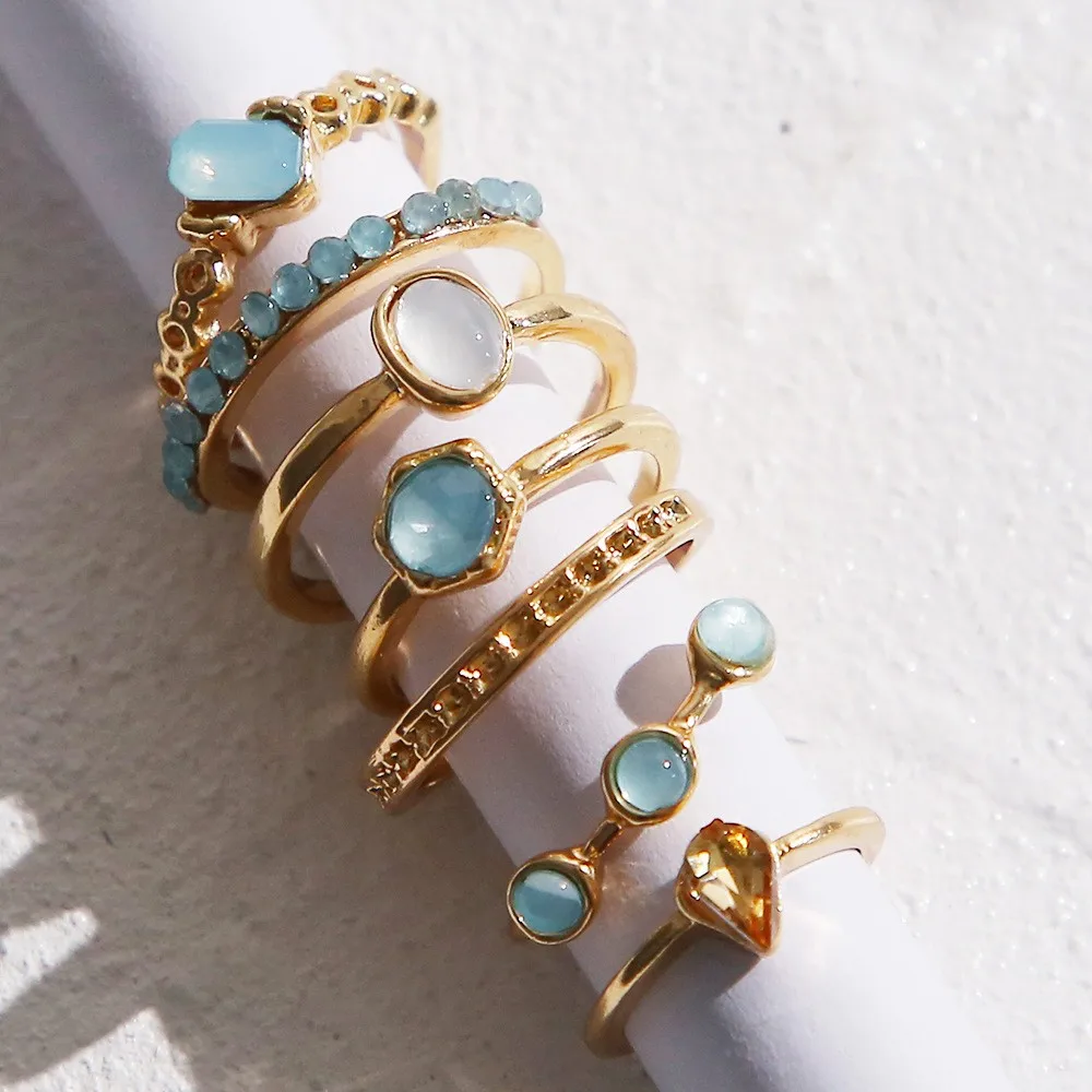 Модный набор колец 8 шт. с красочным камнем для женщин винтажные ко...