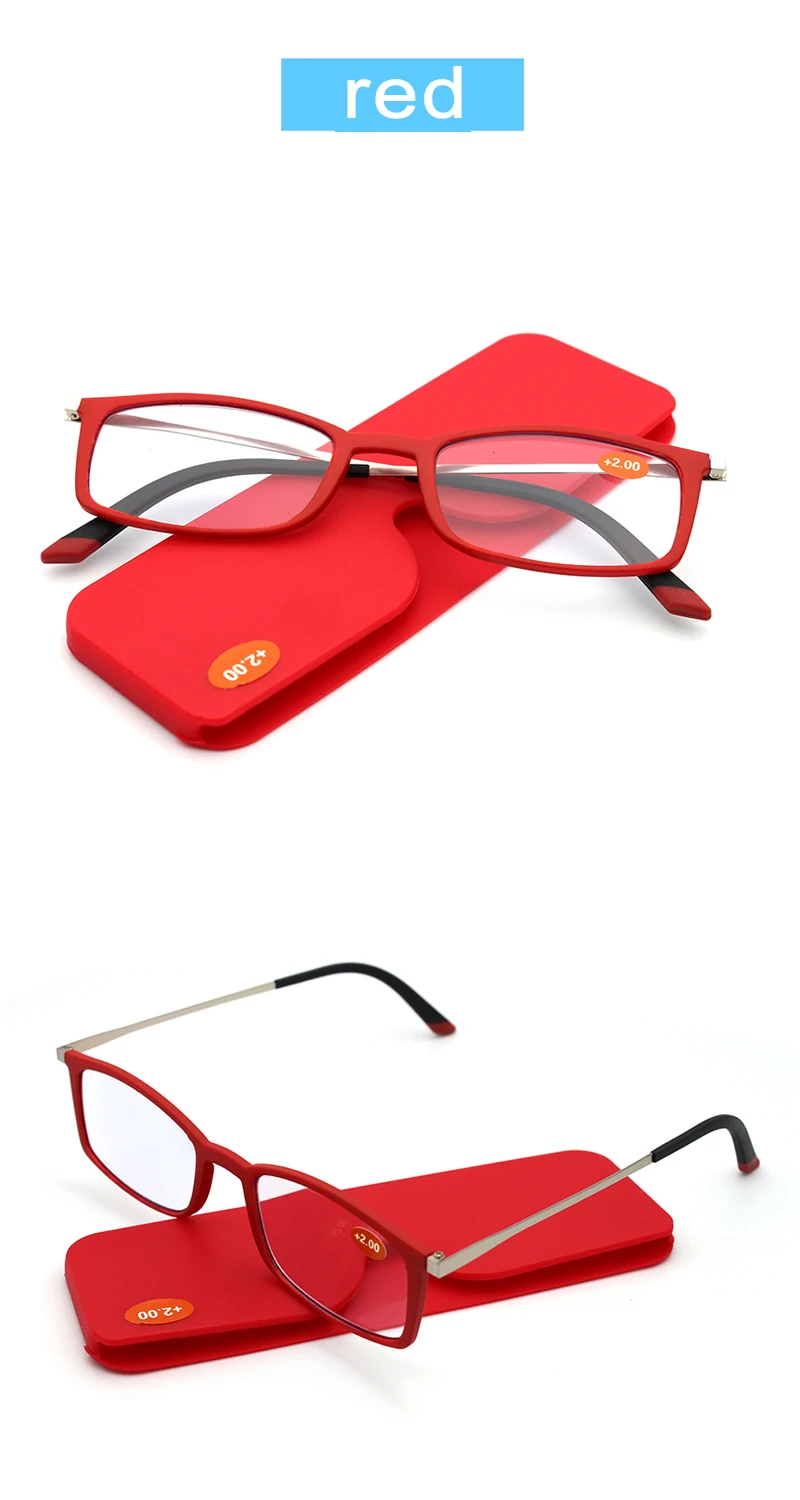 Очки для чтения TR90 с зажимом для носа, женские очки высокого качества, могут быть прикреплены к фоточехлу, красного, черного цветов, 1,5