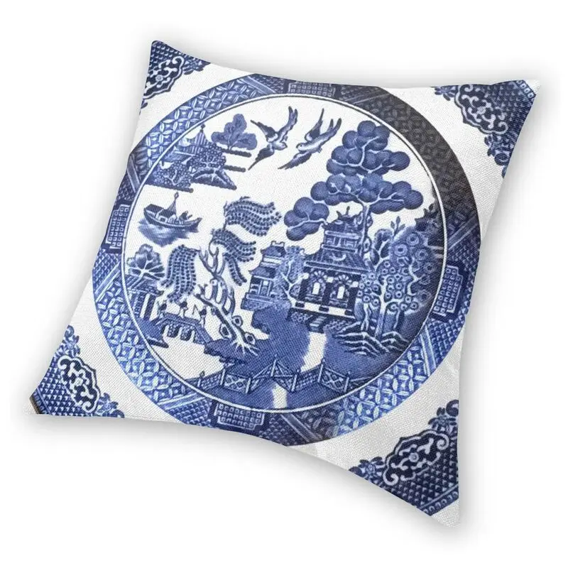 Двусторонняя наволочка для подушки, с 3D-принтом, голубая ива, Китай