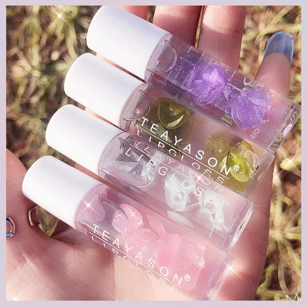 Свернутые лепестки из бусин, фруктовая вода, масло для губ, стеклянный блеск для губ, прозрачный глянцевый бесцветный блеск для губ