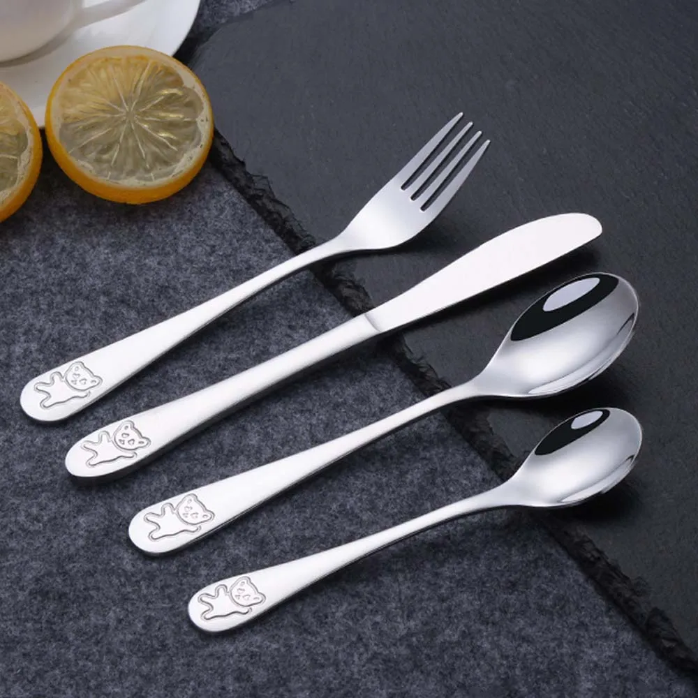 Детский нож из нержавеющей стали, вилка, ложка, мультяшный медведь, столовые приборы для отеля, Западный нож для еды, креативная портативная вилка, подарочный набор столовых приборов
