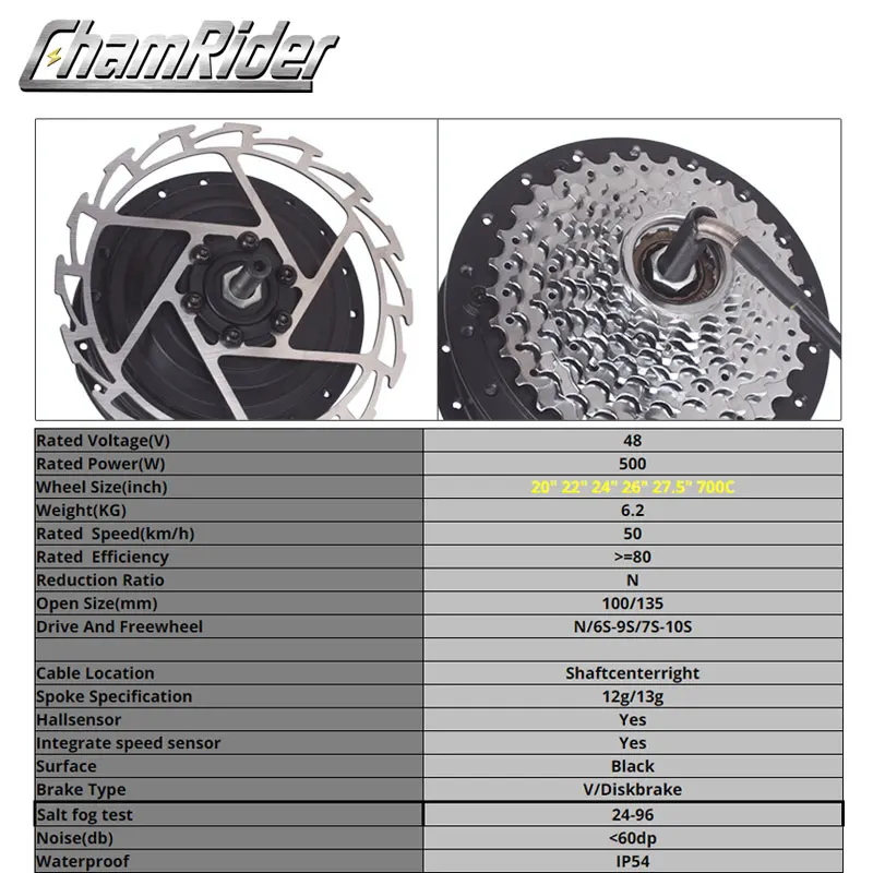 Мотор-колесо 1000 Вт Электрический велосипед 48 в мотор-ступица 500...
