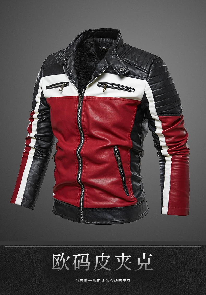 Осенне-зимняя кожаная куртка, мужская повседневная куртка из искусственной кожи, теплое пальто, лоскутное пальто на молнии, ветровка, мотоциклетная верхняя одежда 121