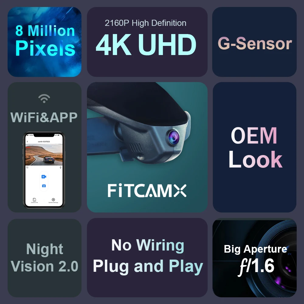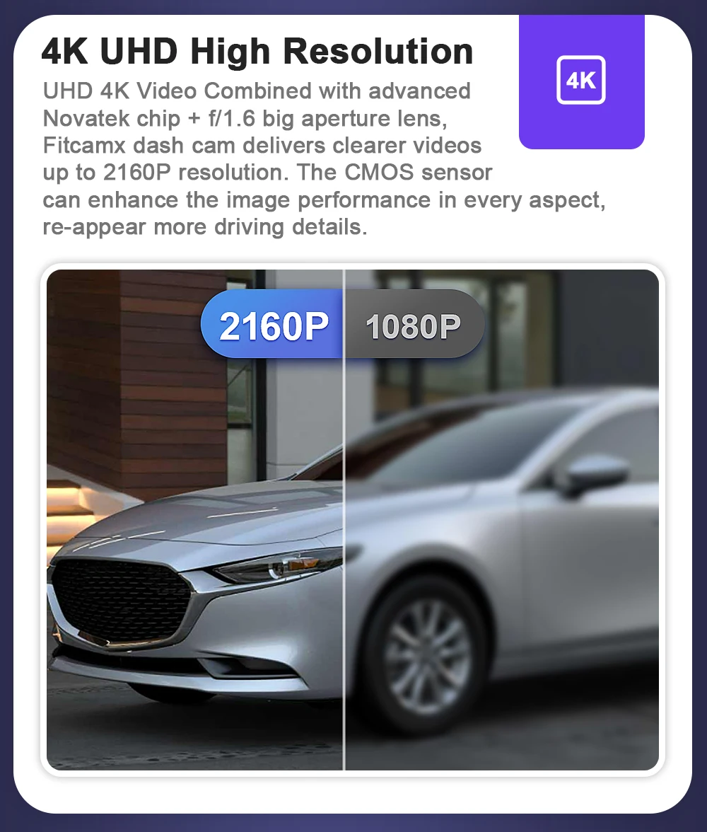 Автомобильный видеорегистратор для Mazda 3 2019 2020 2021 2022,FITCAMX 4K, видеорегистратор передний и задний для Mazda 3, поддержка 128 ГБ макс.