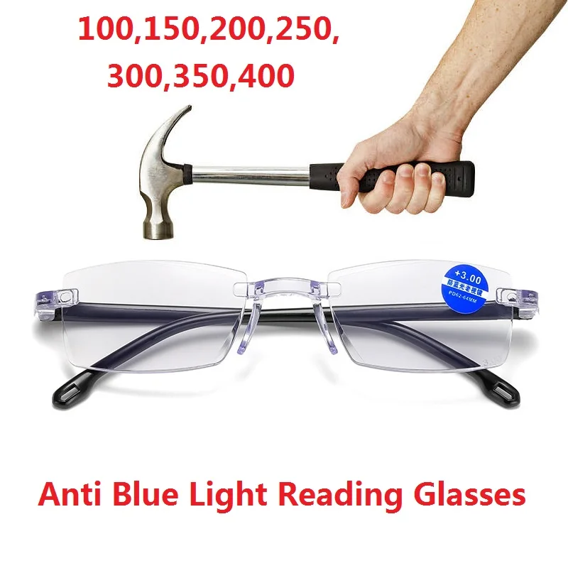 Очки для чтения без оправы для мужчин и женщин, бифокальные аксессуары с защитой от сисветильник света, для близорукости, пресбиопические + 2 + 2,5 + 3 + 3,5 + 4