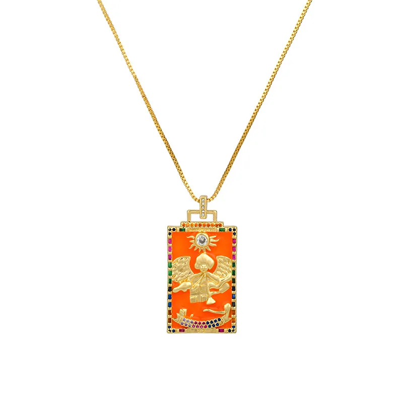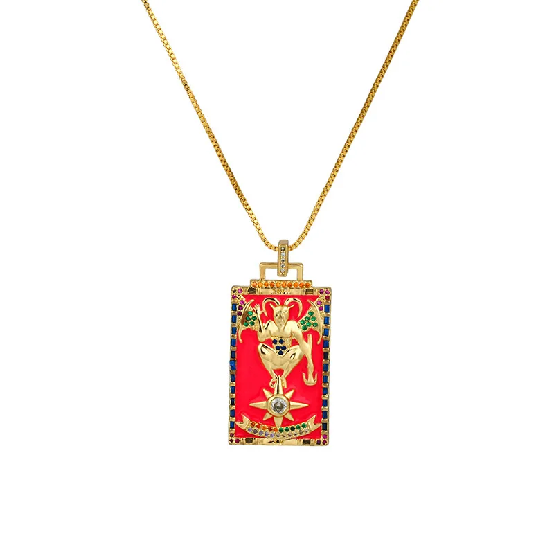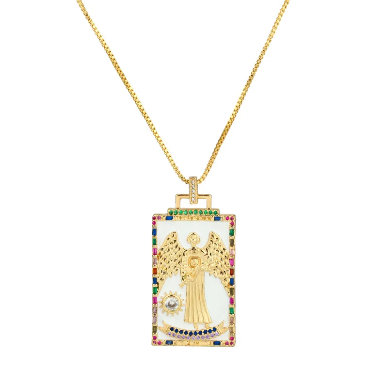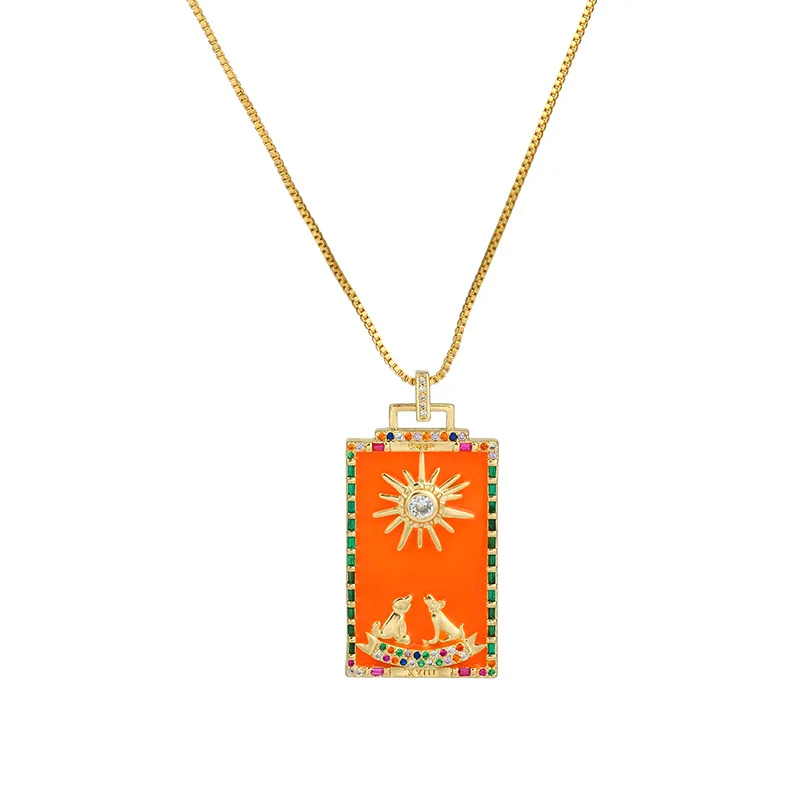 Новое поступление, эмалированное ожерелье с подвеской Таро, позолоченное ожерелье для религиозных женщин, ожерелье с подвеской в виде солнца, луны, темного дьявола, ангела, латунное ожерелье для пар