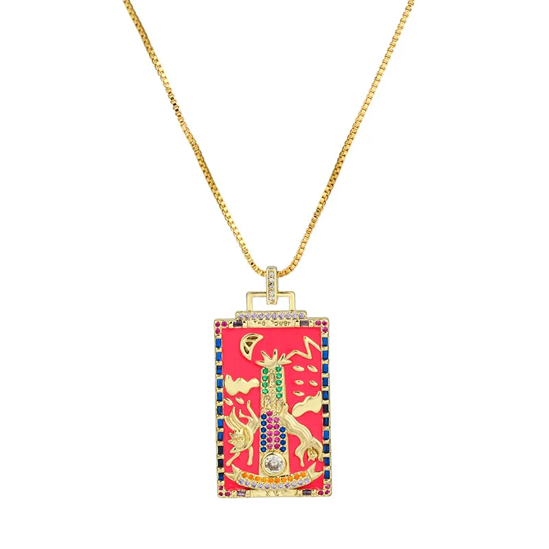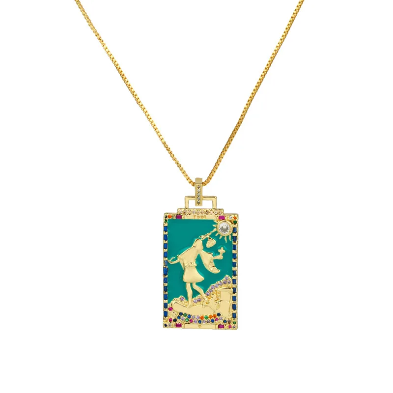 Эмалевое ожерелье с подвеской Таро для женщин, ожерелье для религио...