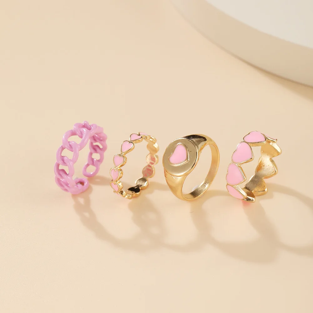 кольца с розовым сердцем Набор милых колец в винтажном стиле с золотым сердцем для женщин и пар, милые модные кольцо женское в розовом персиковом цвете с сердцем для влюбленных, подарок для девушек, ювелирных изделий