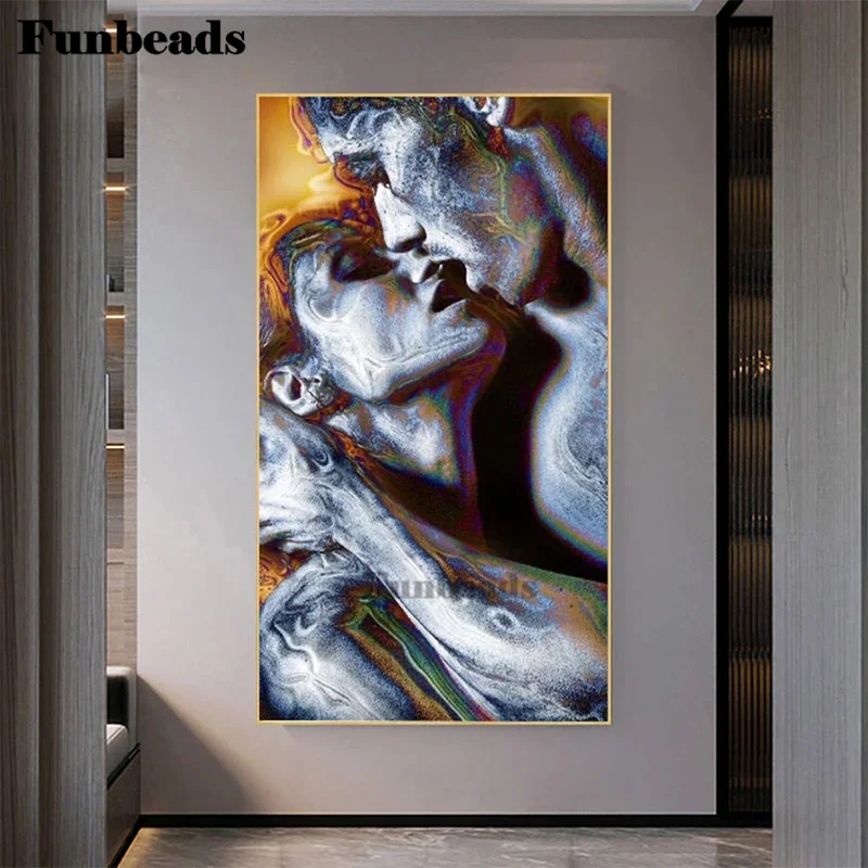 Алмазная живопись сделай сам, абстрактный персонаж, искусство, пара поцелуев, Алмазная мозаика, полная квадратнаякруглая вышивка крестиком, хобби ручной работы FF5837