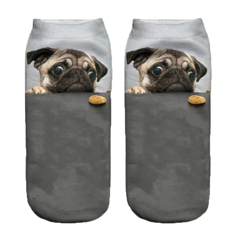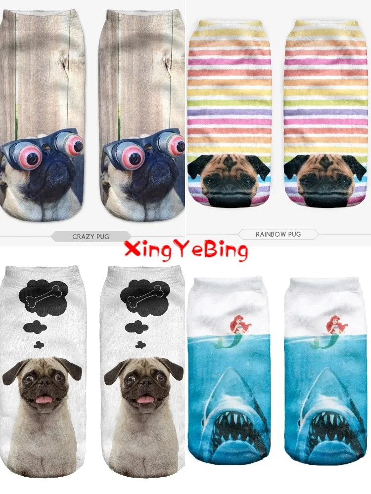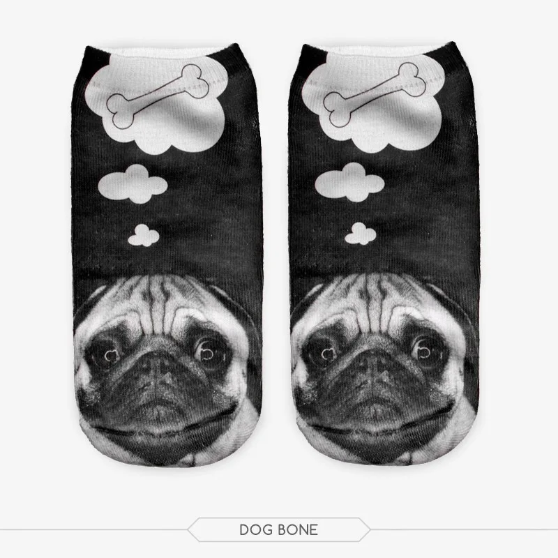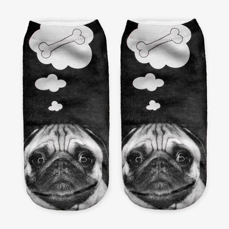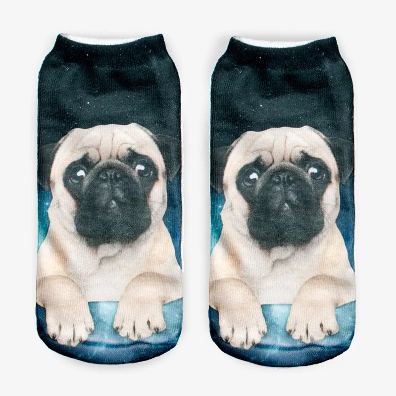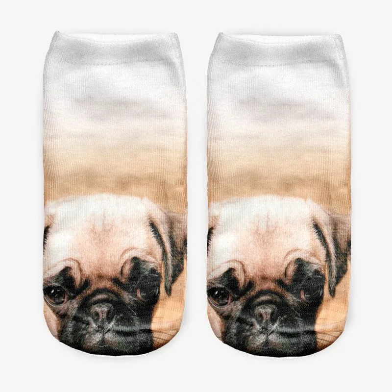Новинка, мужские и женские носки с цифровой печатью 3d, носки-лодочки, милые и удобные носки с принтом мопса, короткие носки