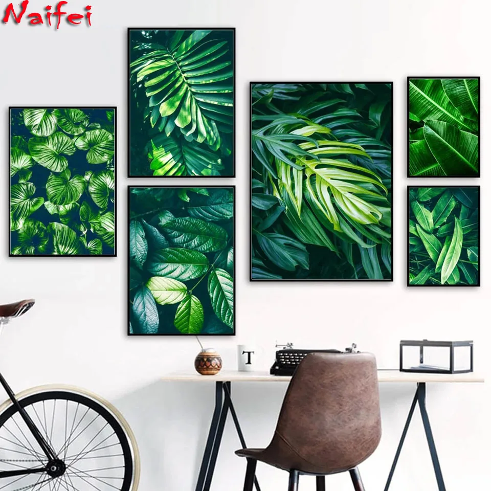Картина для алмазной стены с зелеными растениями, пальмой монстеры, большими листьями, 5d, сделай сам, Набор для вышивки крестиком в скандинавском стиле, Настенная картина для декора гостиной