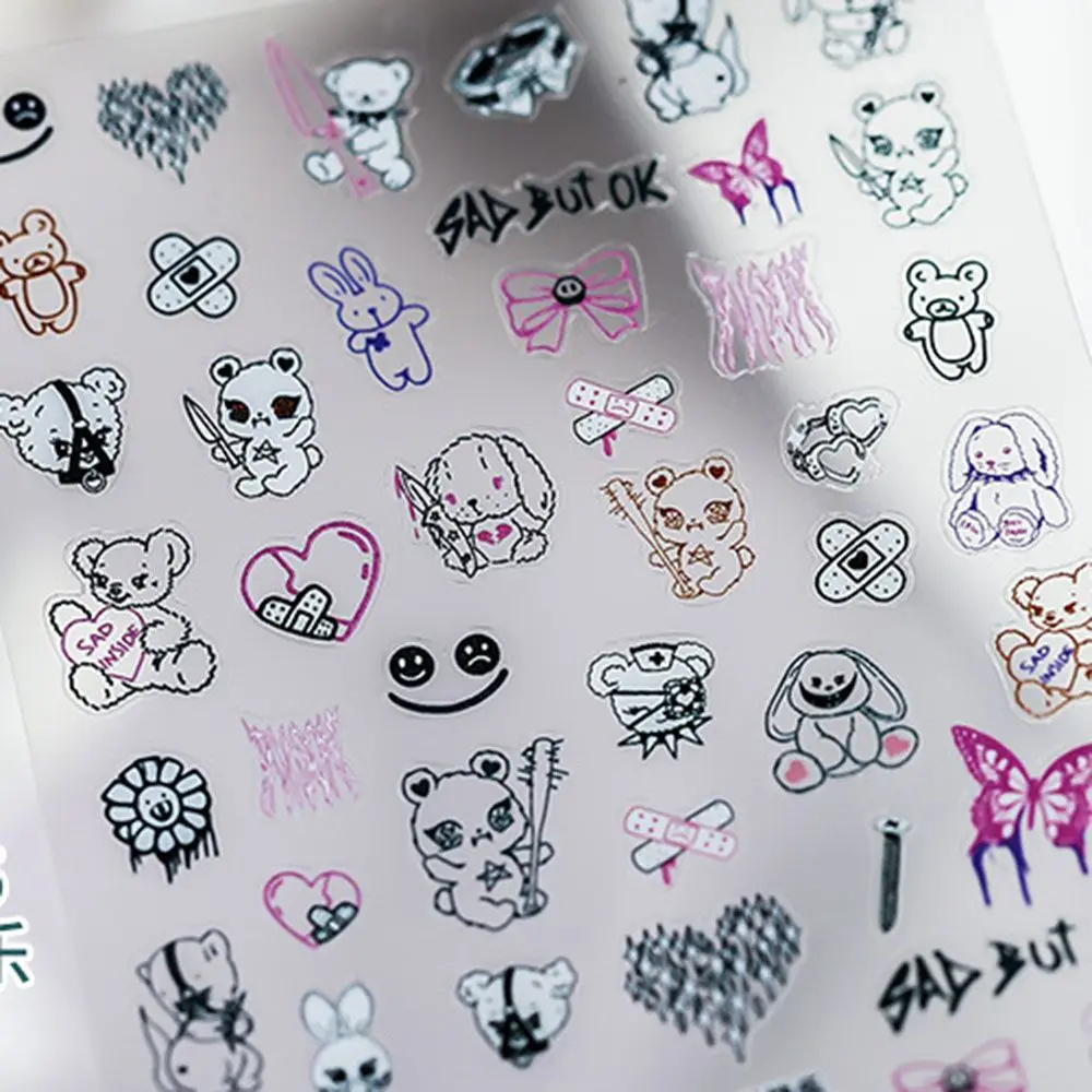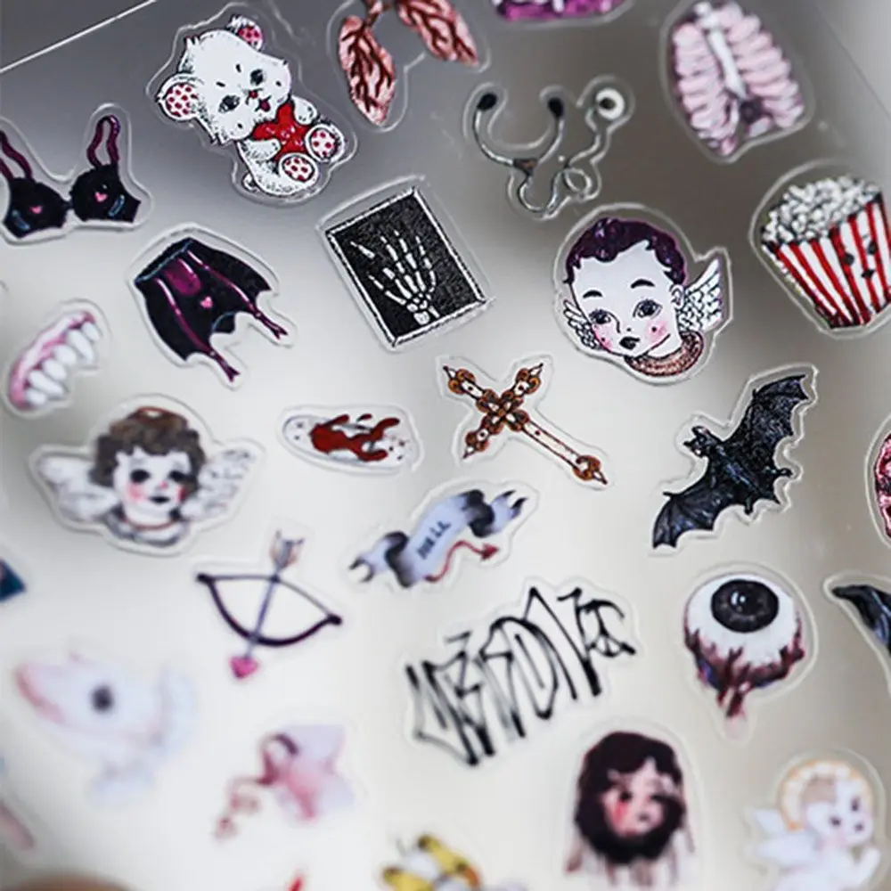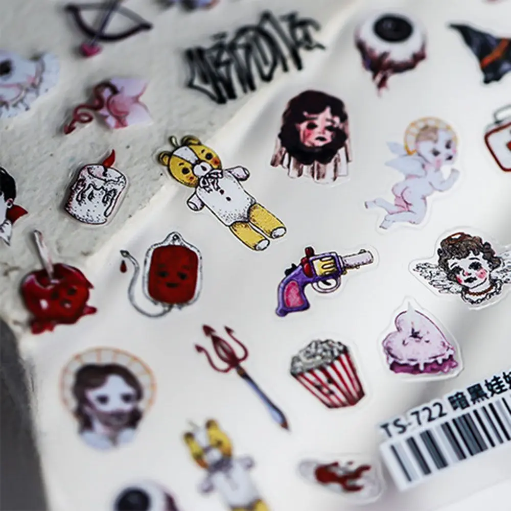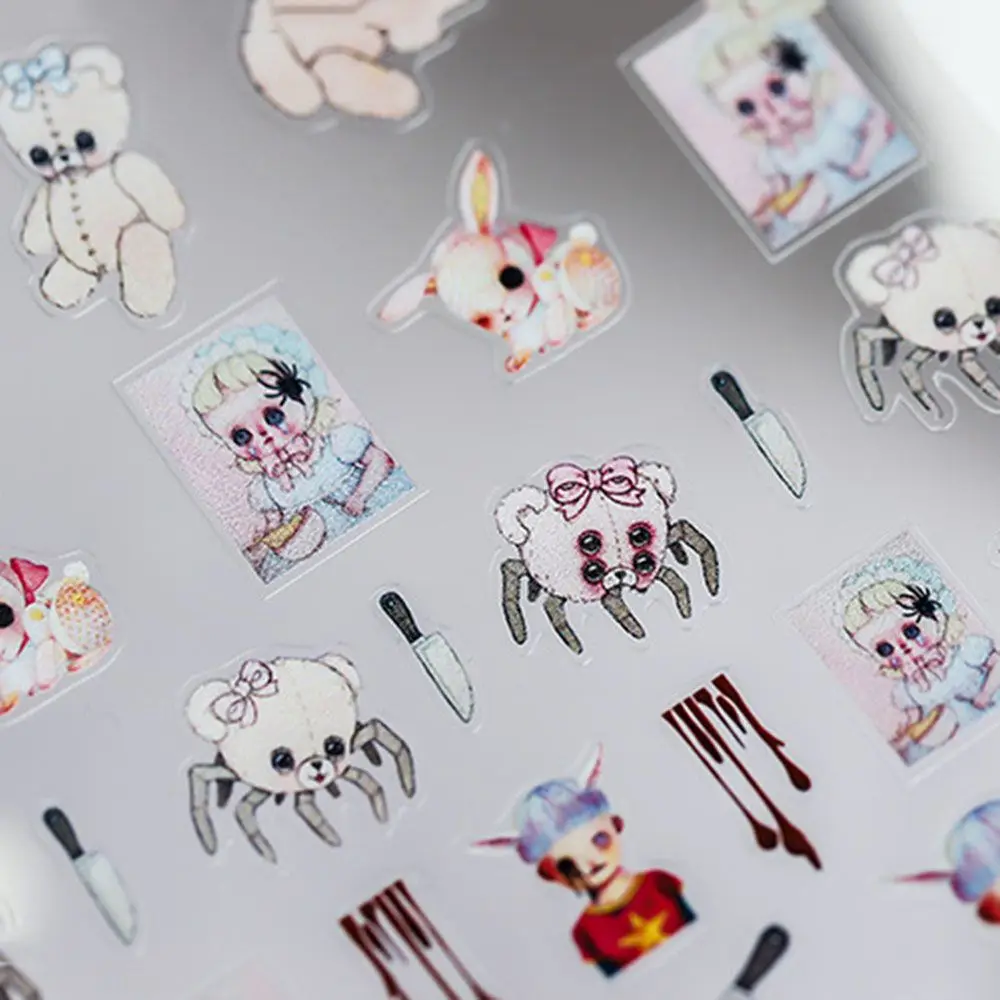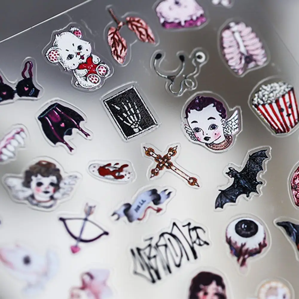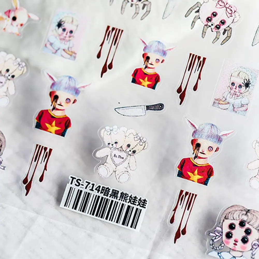 Наклейки для дизайна ногтей серия ужасов Хэллоуина страшная кукла летучая мышь кролик бабочка ультратонкие DIY украшения для дизайна ногтей