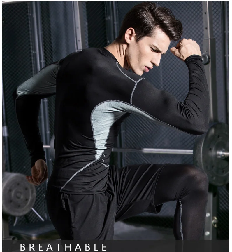 Мужские костюмы для бега, компрессионная спортивная одежда, спортивное термобелье для бега, трико для тренажерного зала, тренировочная одежда, Быстросохнущий Спортивный костюм