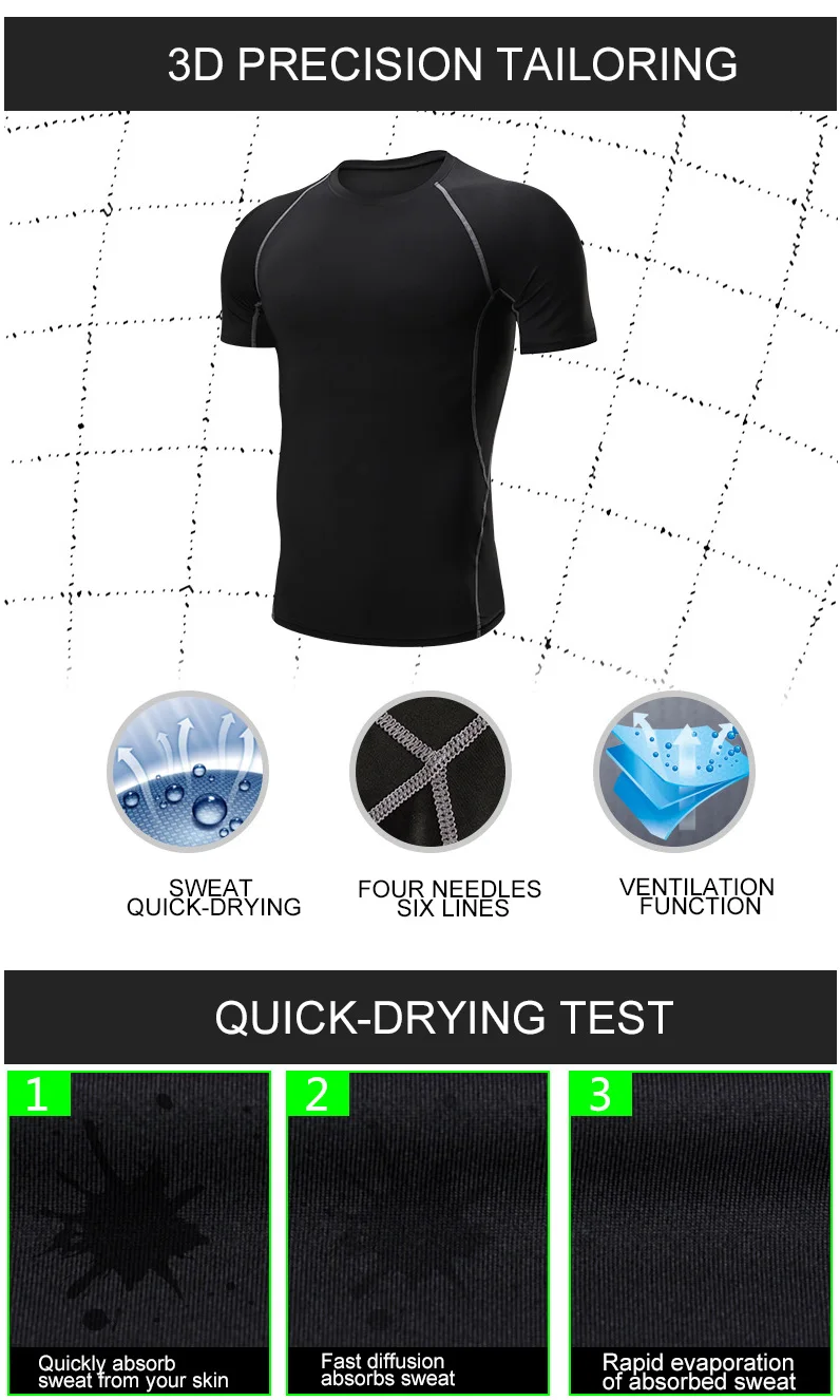 Функция: сухая посадка, дышащая, впитывает пот, высокая эластичность;