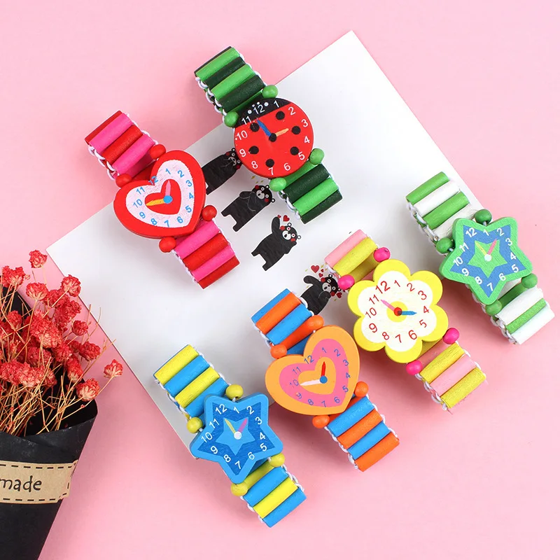 Деревянный браслет в форме часов, 1 шт., детские игрушки для подарков на день рождения, цвет для вечерние ка на вечеринку для мальчиков и девочек выбирается случайным образом