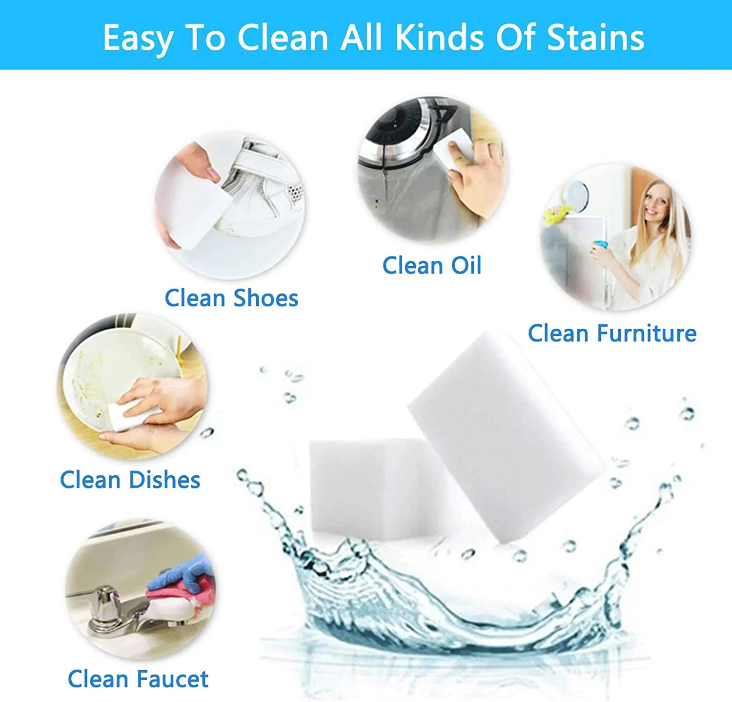 1.100% качественные здоровые материалы, состоящие из охраны окружающей среды и безопасности, сильной способности удалять пятна и пыль, держать в чистоте.2. Не требуется моющее средство, просто протрите пятно слегка водой, чтобы легко удалить пятно3. Широкий спектр применений, подходит для:Упорные пятна таблеток для инструментов для ванной комнаты;Пыль и грязь от плитки, стен и полов;Посуда, посуда, чайные сервизы;Бытовая техника, стиральные машины, холодильники, микроволновые печи и т. Д.Кухонные приборы;Офисное оборудование, такое как принтеры и копиры;Детские игрушки;Пятна, оставленные масляными красками;Спортивные товары: кроссовки;Грязь от автомобилей и автомобильных аксессуаров;Кожаные изделия: мебельные сумки для дивана и т. Д., после обслуживания с кожаными смазочными материалами.