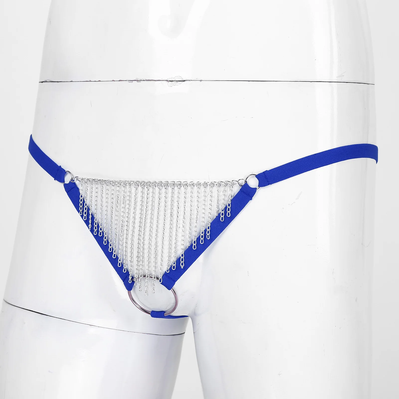 Мужское нижнее белье, Трусы-стринги с пузырьковым мешочком, трусы с металлической цепочкой и кисточками, Трусы-стринги с низкой талией и T-образной бахромой, нижнее белье