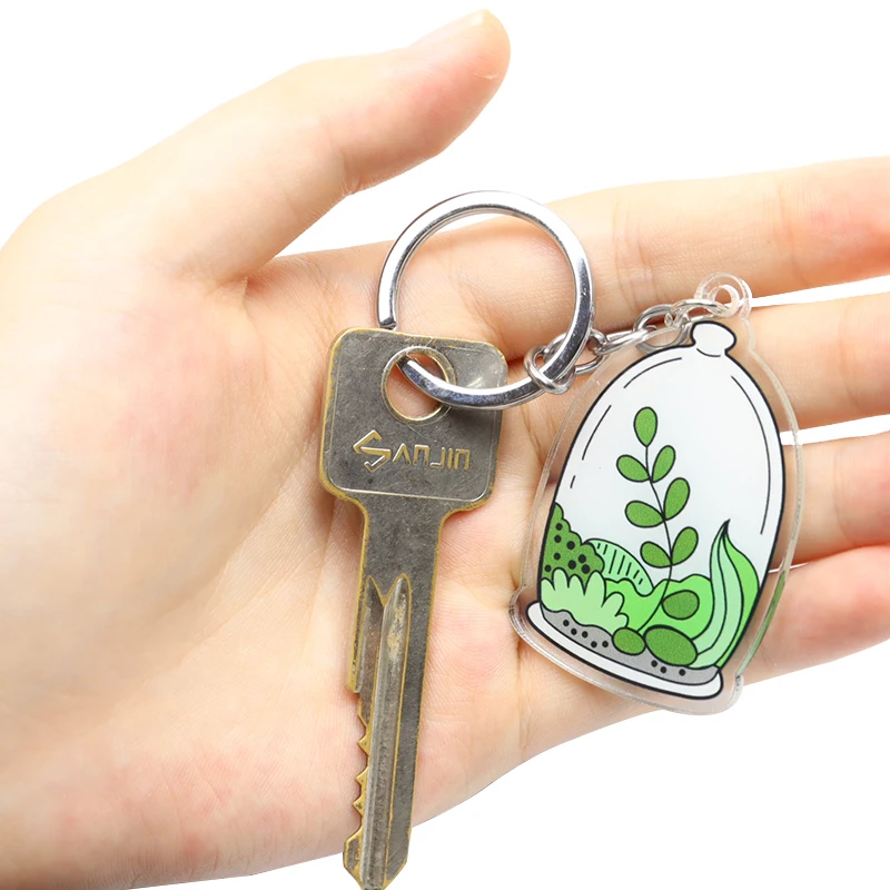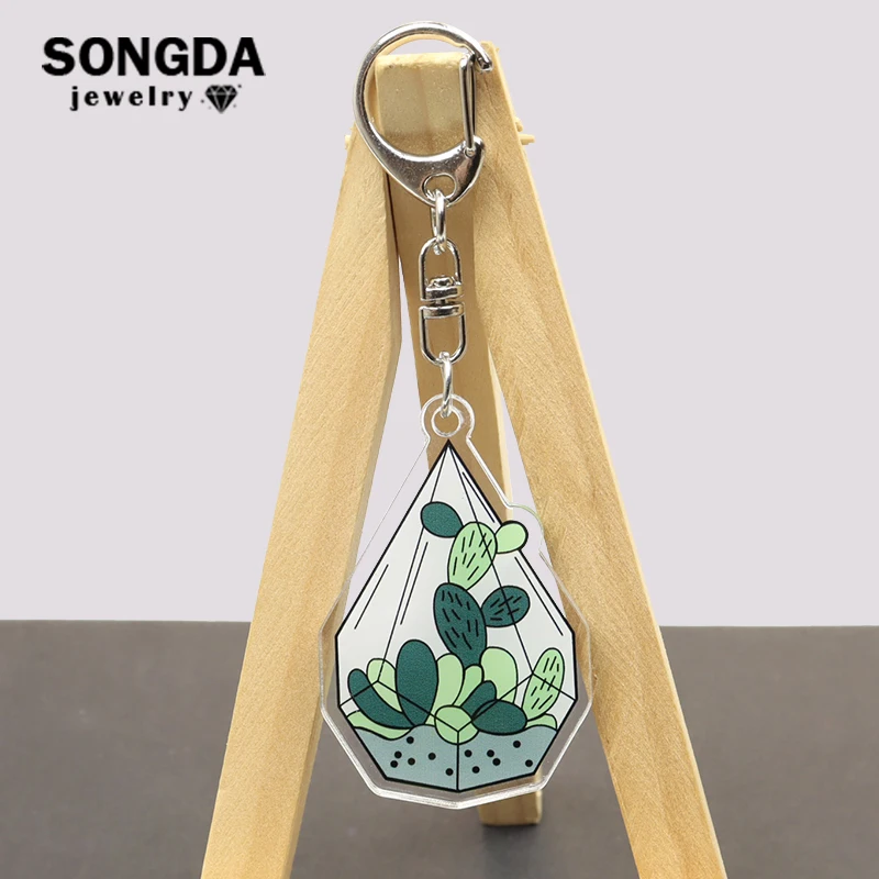 Брелок с зеленым растением в горшке, Террариум, кактус, узор алоэ, акриловое кольцо для ключей, модная ключница, подвесные аксессуары для сумок лечебные подарки