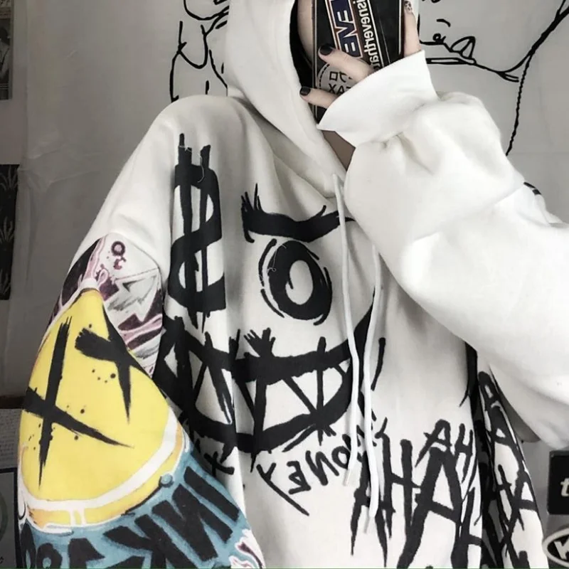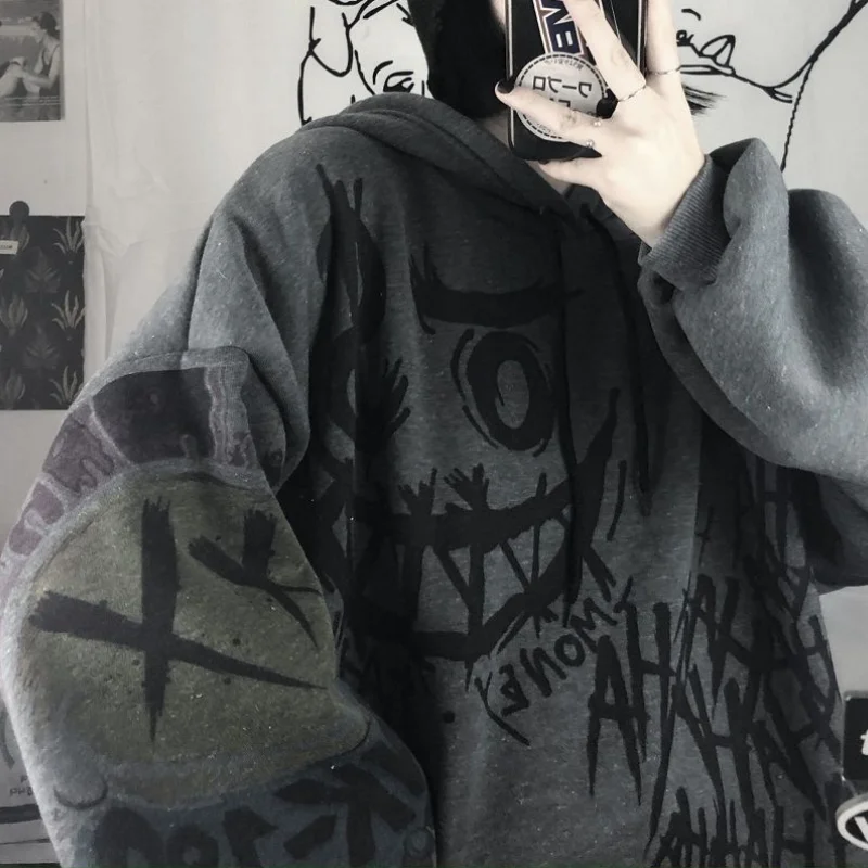 Худи HOUZHOU в готическом стиле, женские топы в стиле Харадзюку, толстовка в стиле панк с мультяшным принтом, весна-осень 2021, Повседневная Свободная уличная одежда большого размера